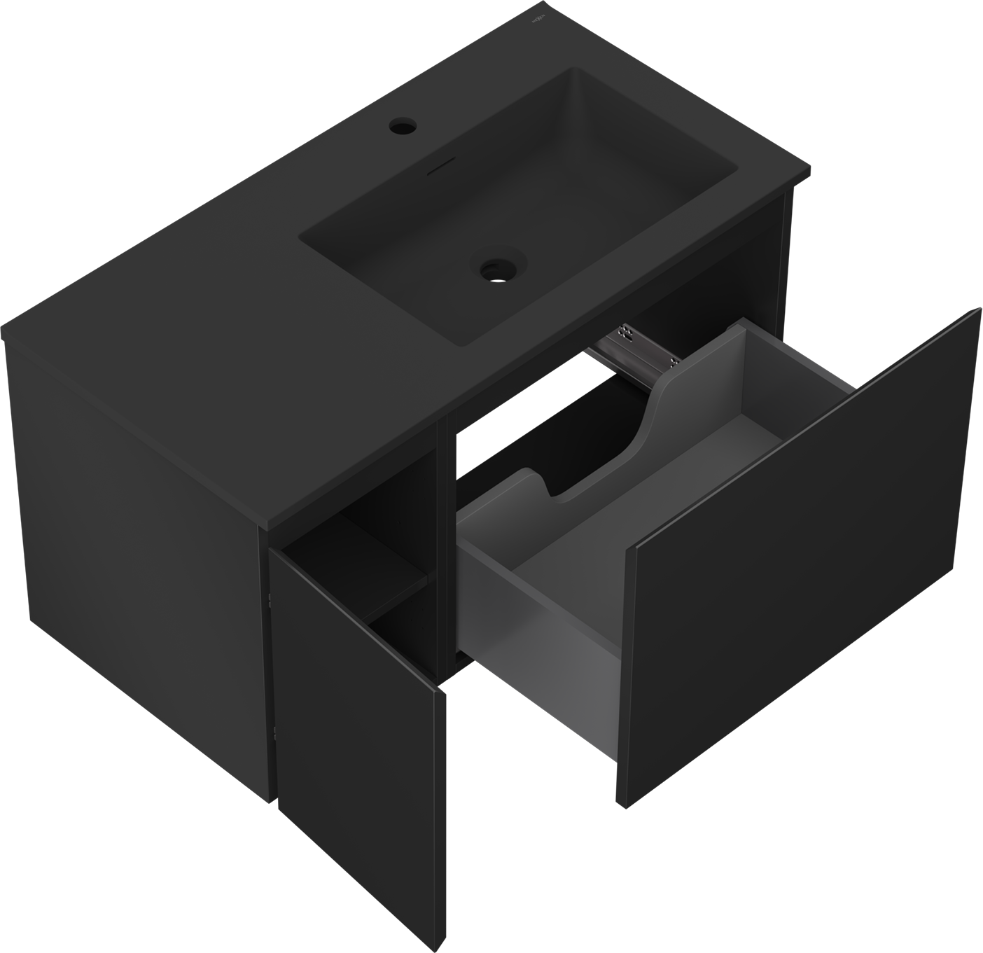 Mexen Orio dulap baie 90 cm cu lavoar Otis pe dreapta, 1S, 1D, negru mat - 91A13-09047-3-BBFF71-W18P71