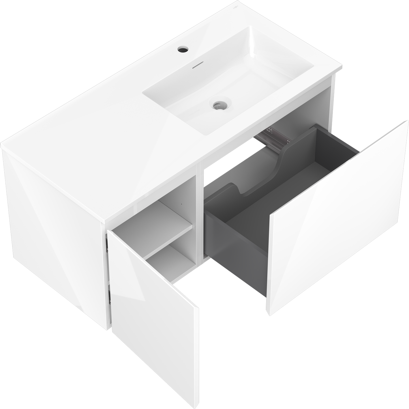 Mexen Orio dulap baie 100 cm cu lavoar Otis drept, 1S, 1D, alb lucios - 91A13-10047-3-BBFF00-W18P00