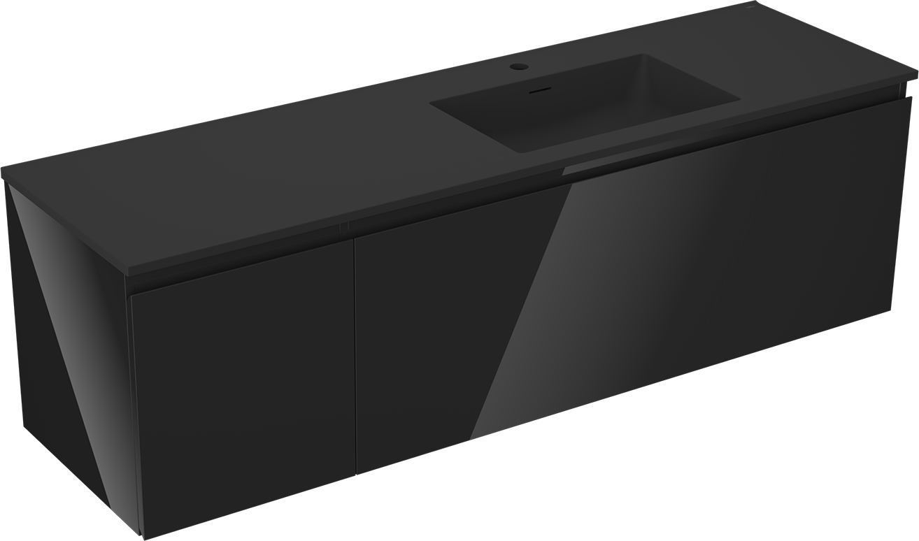 Mexen Orio dulap de baie 160 cm cu lavoar Otis dreapta, 1S, 1D, negru lucios/negru mat - 91A13-16047-3-BBFF70-W18P71