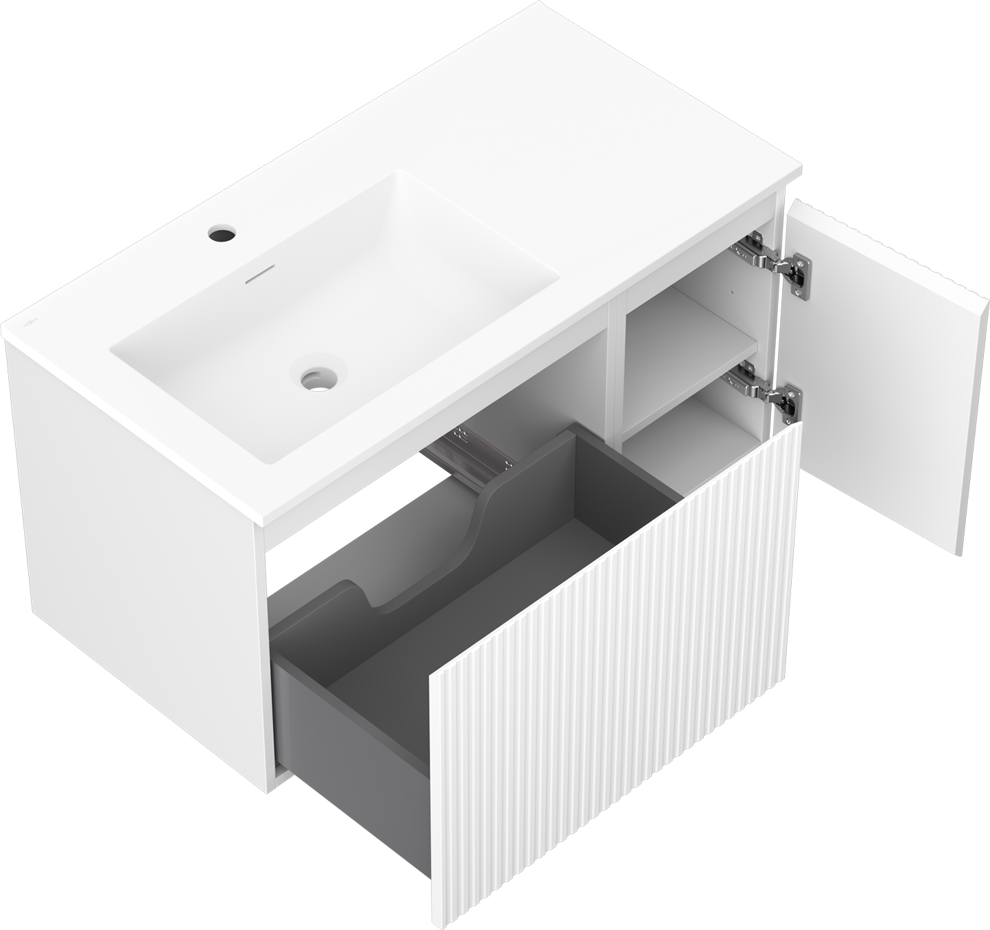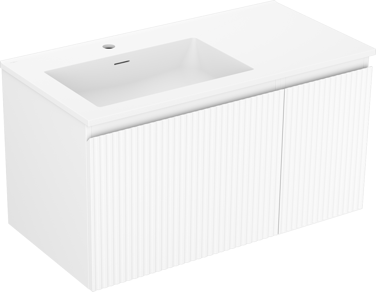 Mexen Rivel dulap baie 90 cm cu chiuvetă Otis stânga, 1S, 1D, striat, alb mat - 91A23-09047-3-BBFF01-W18L01