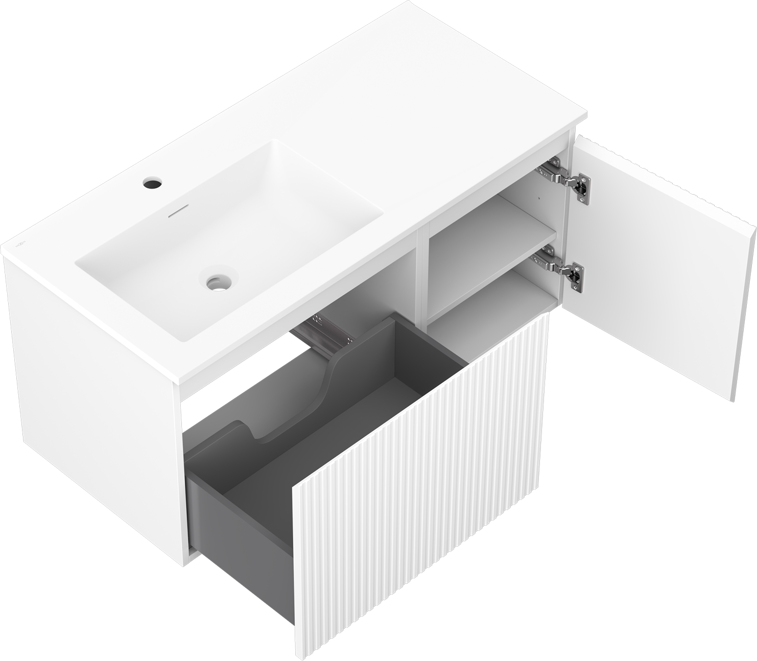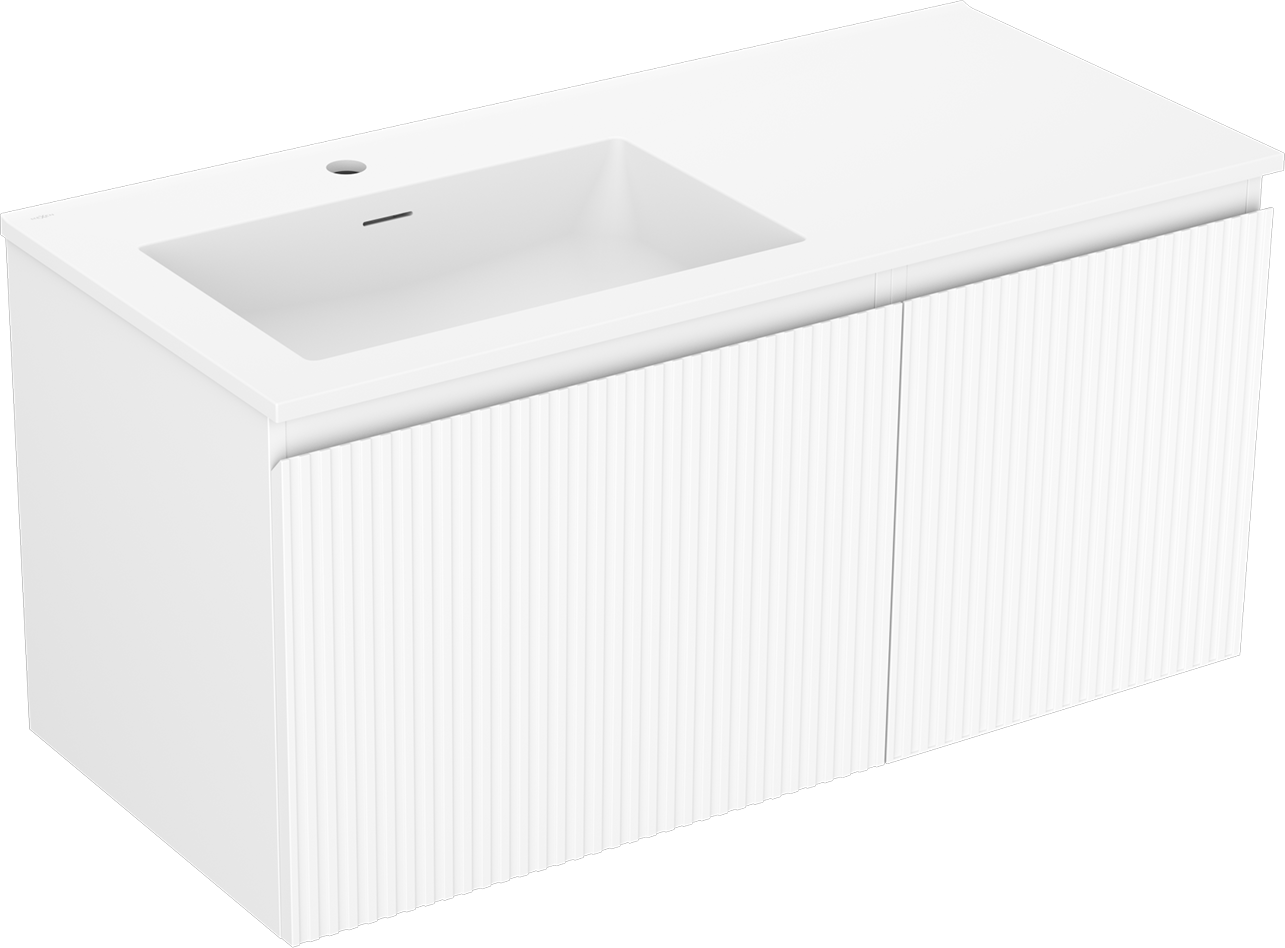 Mexen Rivel dulap baie 100 cm cu lavoar Otis stâng, 1S, 1D, canelat, alb mat - 91A23-10047-3-BBFF01-W18L01