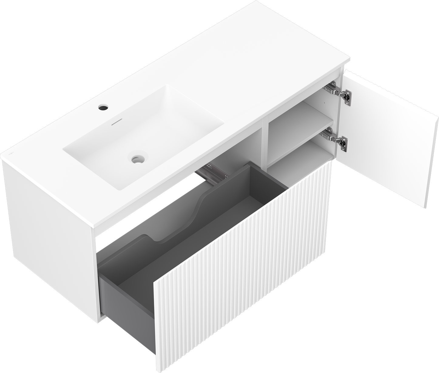 Mexen Rivel dulap baie 120 cm cu chiuvetă Otis stânga, 1S, 1D, cu caneluri, alb mat - 91A23-12047-3-BBFF01-W18L01