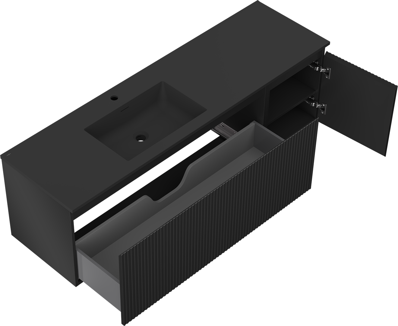 Mexen Rivel dulap baie 160 cm cu lavoar Otis stânga, 1S, 1D, canelat, negru mat - 91A23-16047-3-BBFF71-W18L71