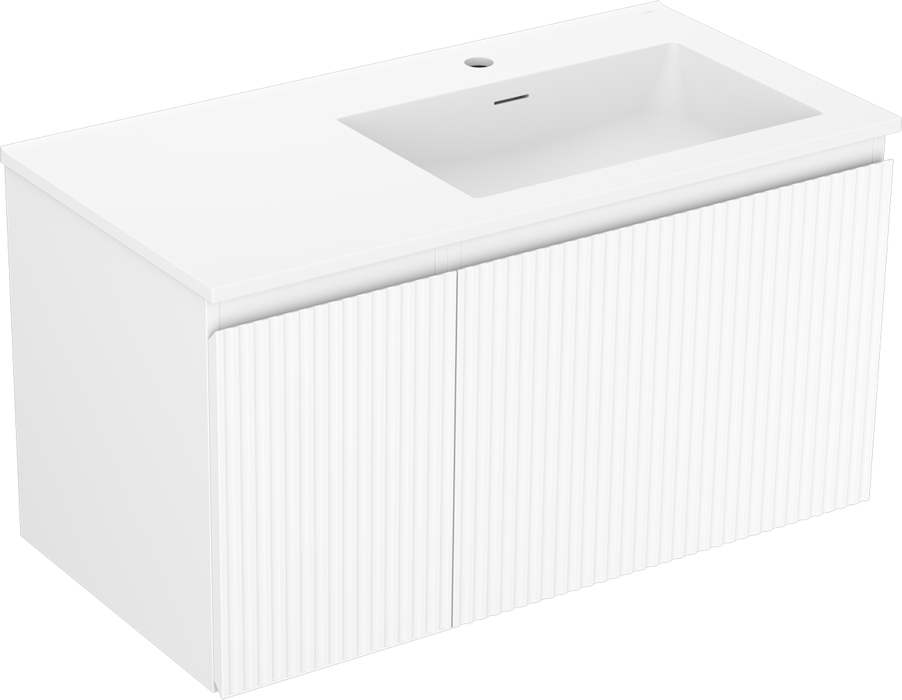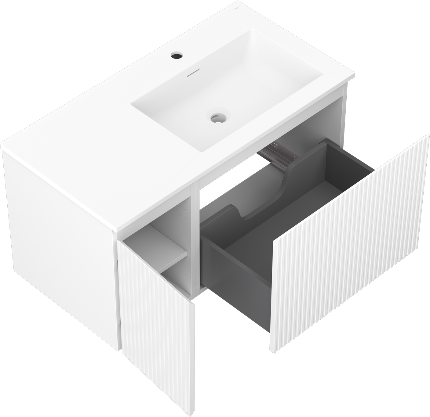 Mexen Rivel dulap baie 90 cm cu chiuvetă Otis dreapta, 1S, 1D, striat, alb mat - 91A23-09047-3-BBFF01-W18P01