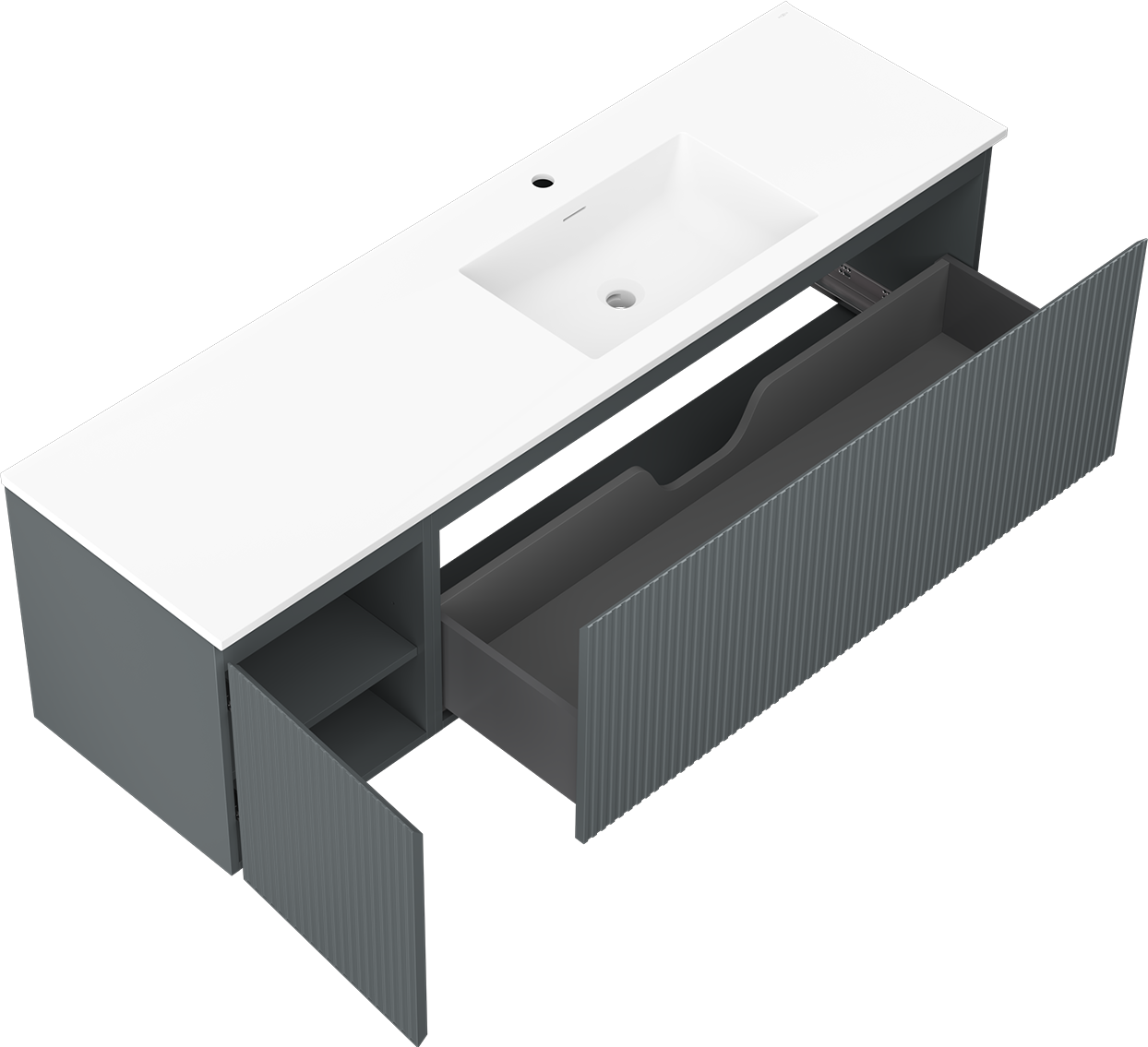 Mexen Rivel dulap baie 160 cm cu lavoar Otis pe dreapta, 1 sertar, 1 ușă, riflat, grafit/alb mat - 91A23-16047-3-BBFF66-W18P01