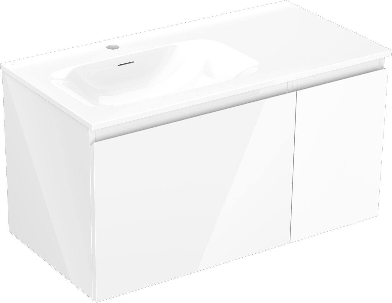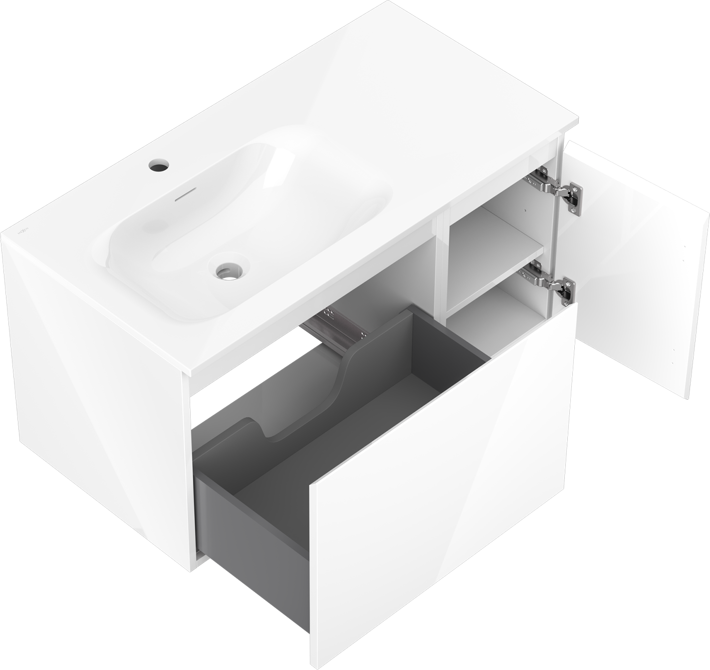 Decupajul în sertar este proiectat în așa fel încât să acomodeze sifonul, care este esențial în instalațiile de lavoare. Datorită acestui fapt, mobila poate fi montată complet funcțională, fără a fi necesară renunțarea la spațiul din sertar în favoarea instalației.