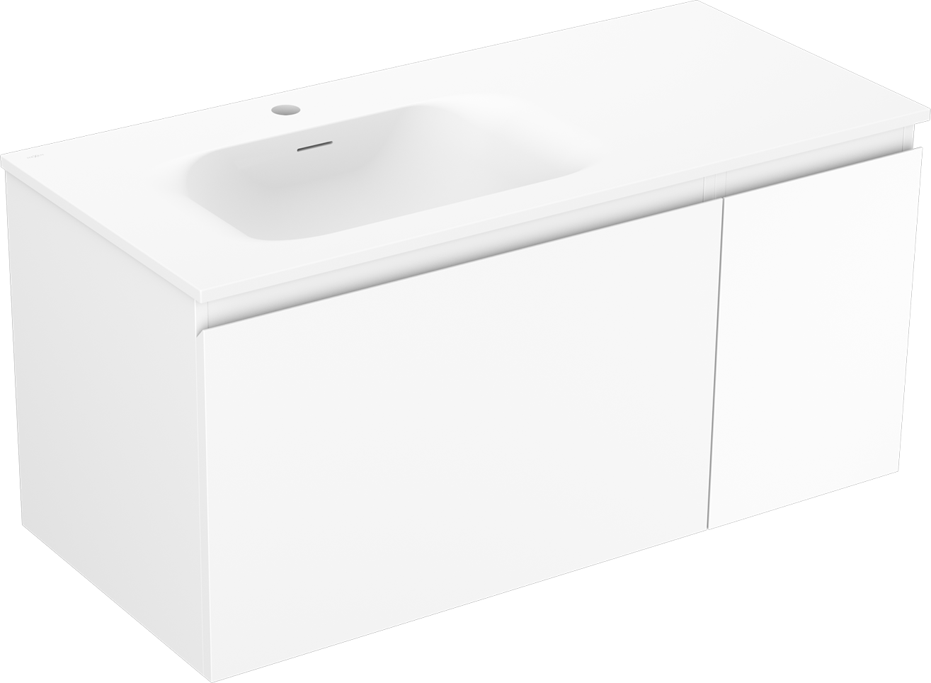 Decupajul în sertar este proiectat în așa fel încât să acomodeze sifonul, care este esențial în instalațiile de lavoare. Datorită acestui fapt, mobila poate fi montată complet funcțională, fără a fi necesară renunțarea la spațiul din sertar în favoarea instalației.