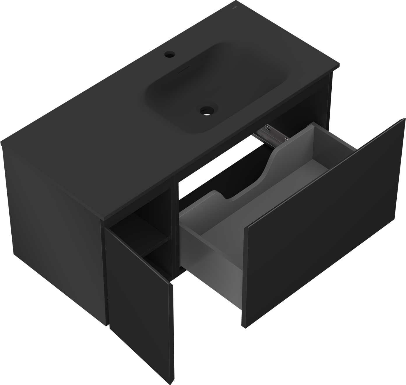 Decupajul în sertar este proiectat în așa fel încât să acomodeze sifonul, care este esențial în instalațiile de lavoare. Datorită acestui fapt, mobila poate fi montată complet funcțională, fără a fi necesară renunțarea la spațiul din sertar în favoarea instalației.
