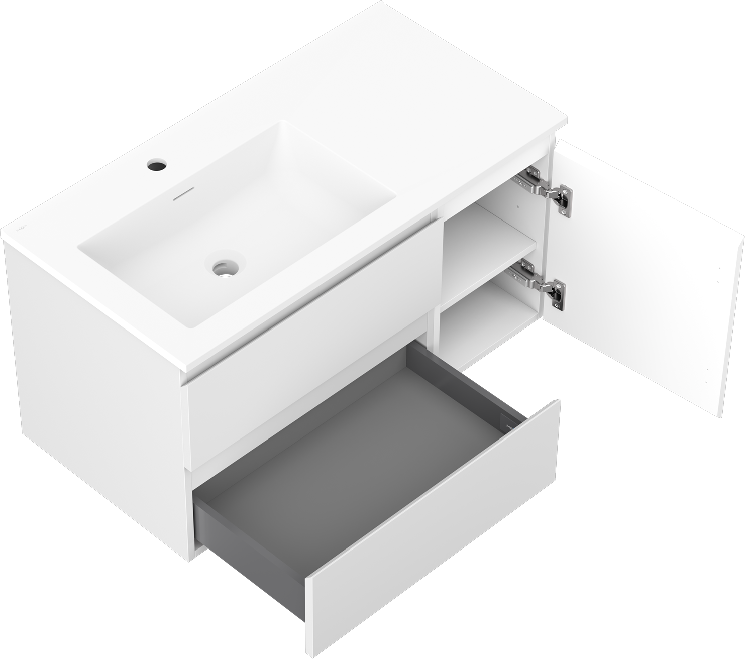 Mexen Orio dulap baie 90 cm cu lavoar Otis stânga, 2S, 1D, alb mat - 91A13-09047-3-BBFFF01-W18L01
