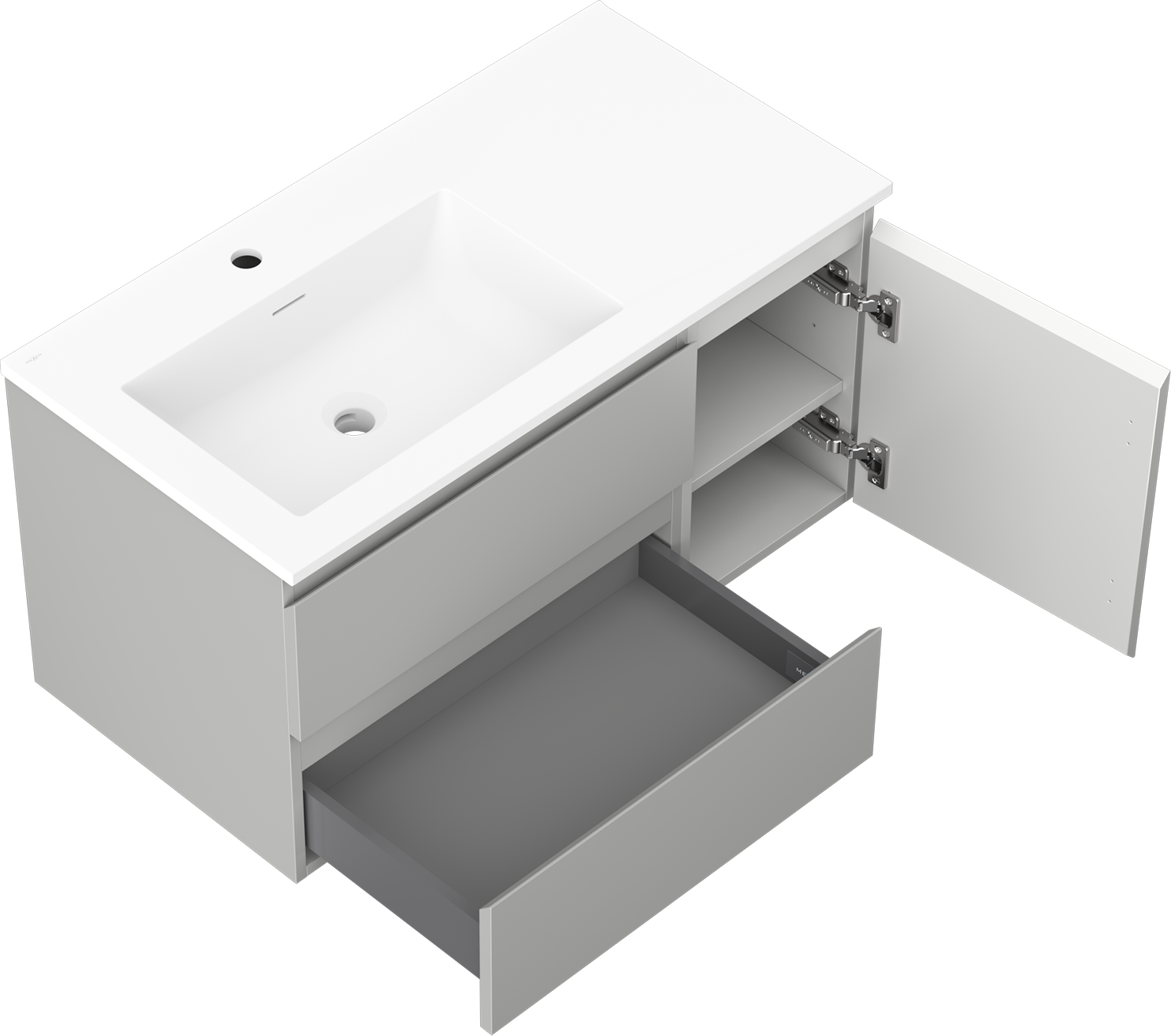 Mexen Orio dulap baie 90 cm cu lavoar Otis stâng, 2S, 1D, gri mat/alb mat - 91A13-09047-3-BBFFF62-W18L01