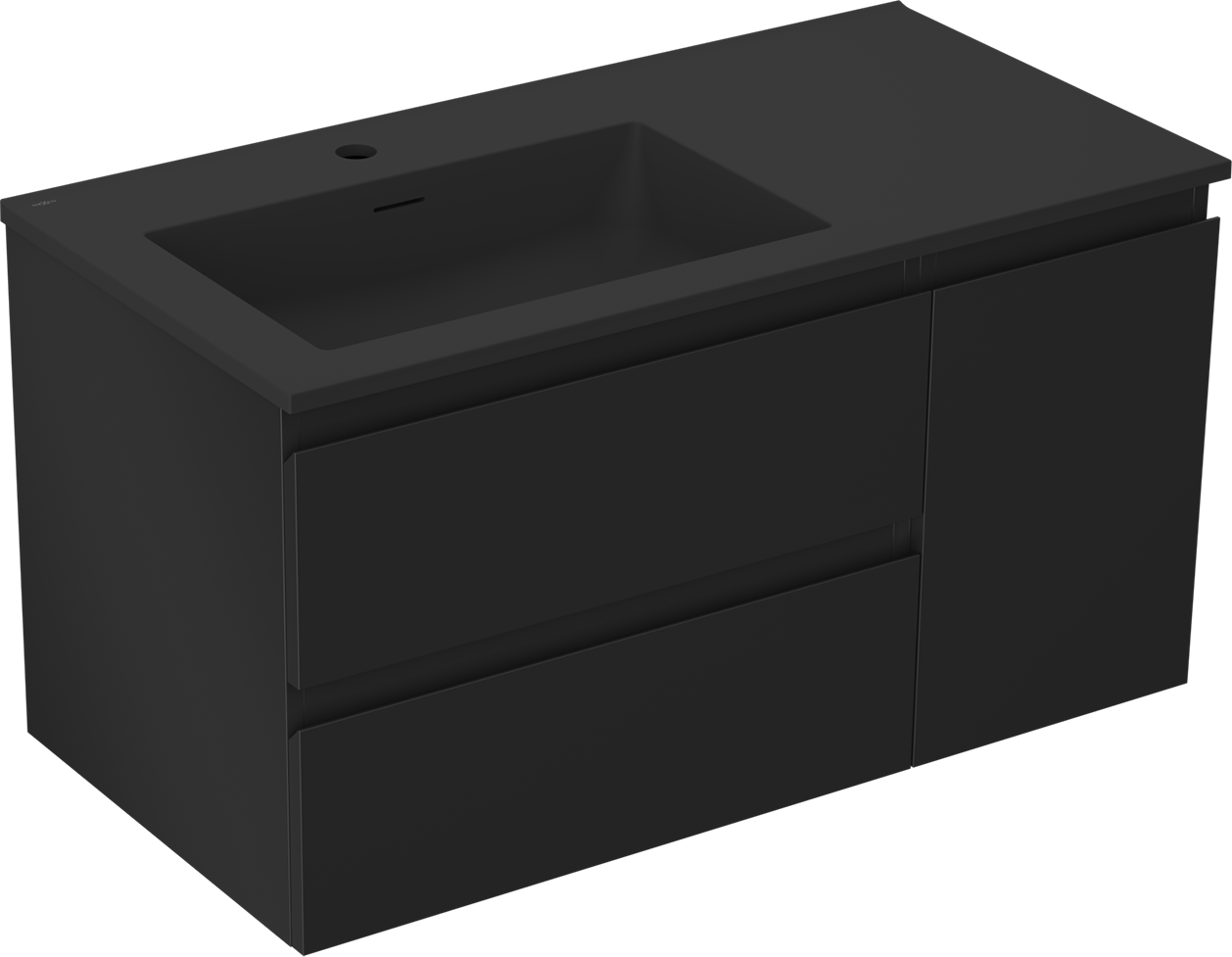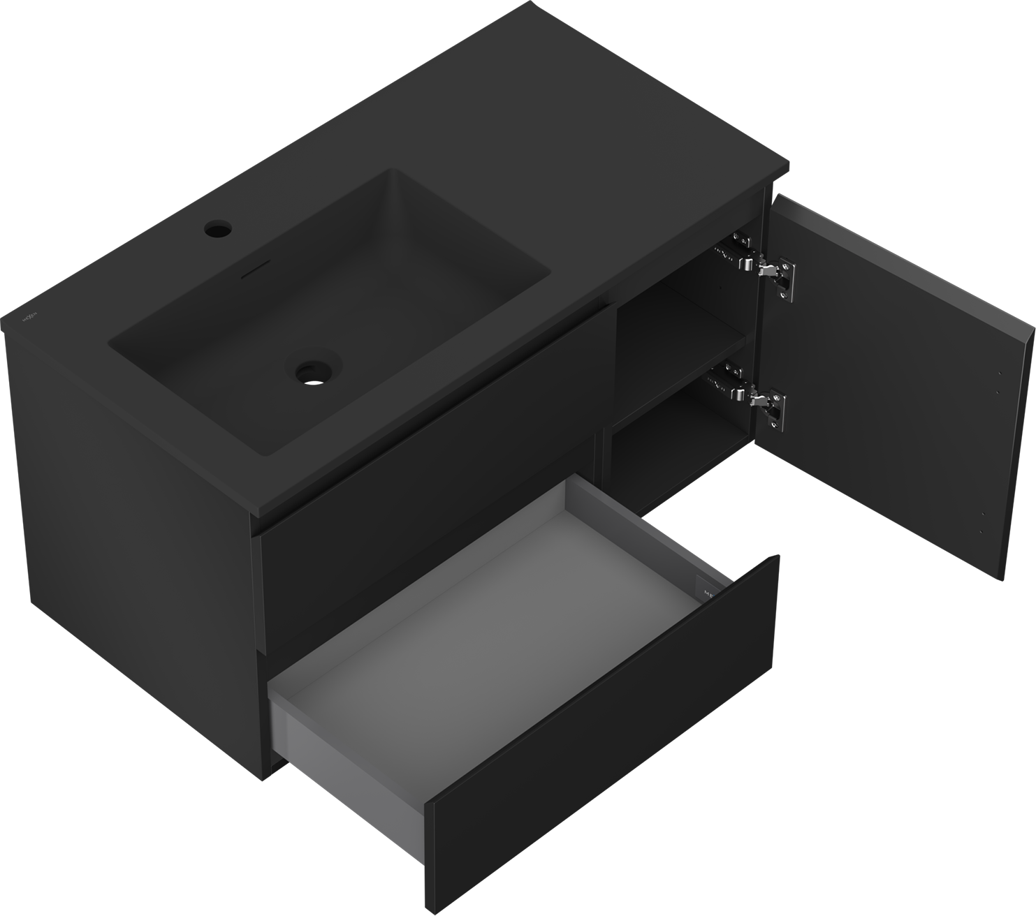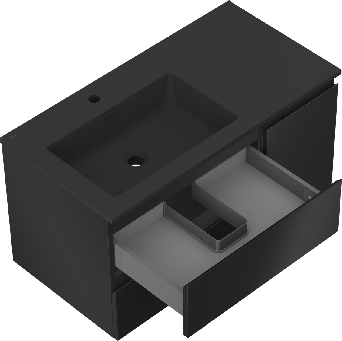 Mexen Orio dulap baie 90 cm cu lavoar Otis stânga, 2S, 1D, negru mat - 91A13-09047-3-BBFFF71-W18L71