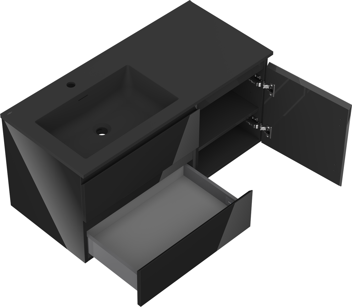 Decupajul în sertar este proiectat în așa fel încât să acomodeze sifonul, care este esențial în instalațiile de lavoare. Datorită acestui fapt, mobila poate fi montată complet funcțională, fără a fi necesară renunțarea la spațiul din sertar în favoarea instalației.