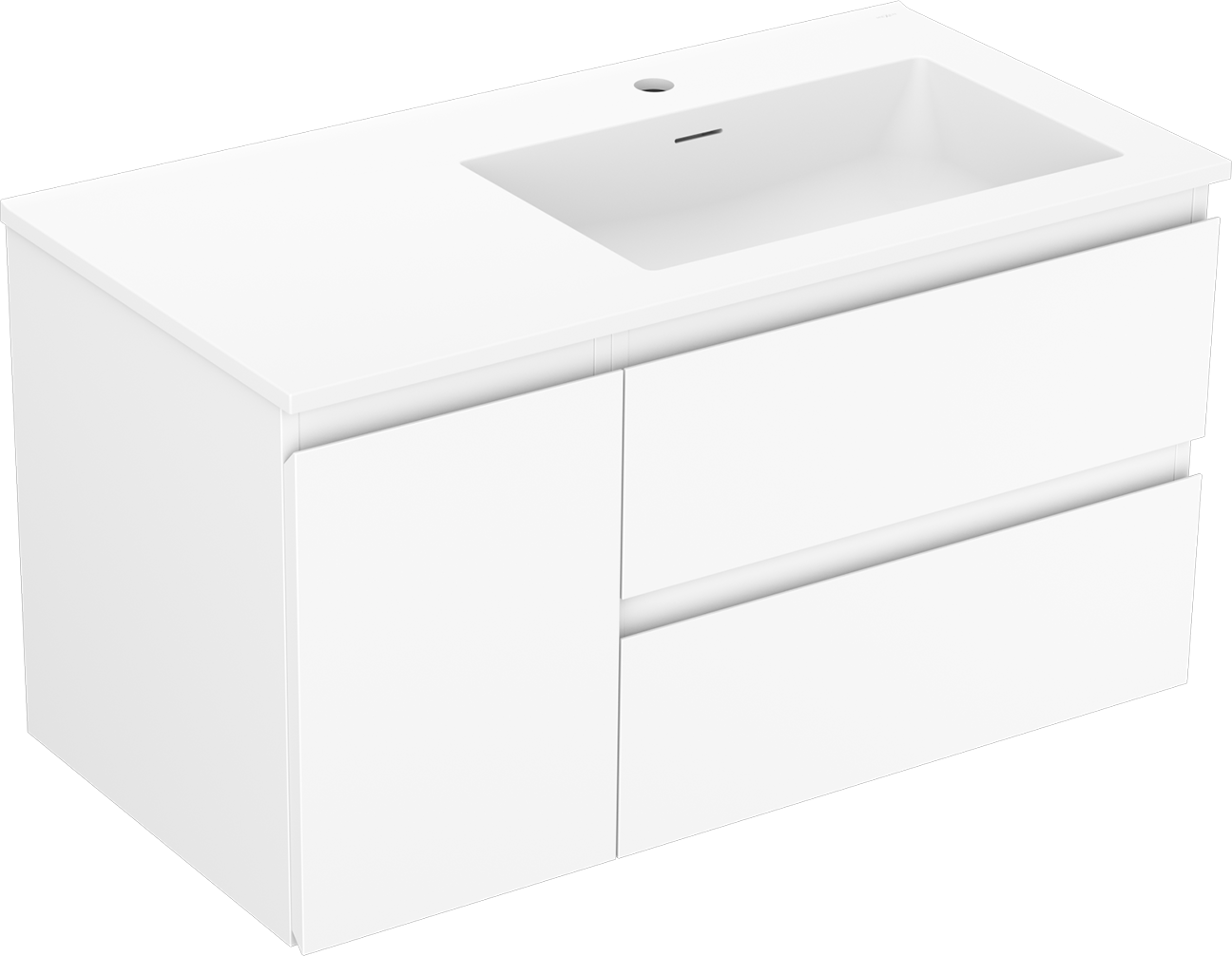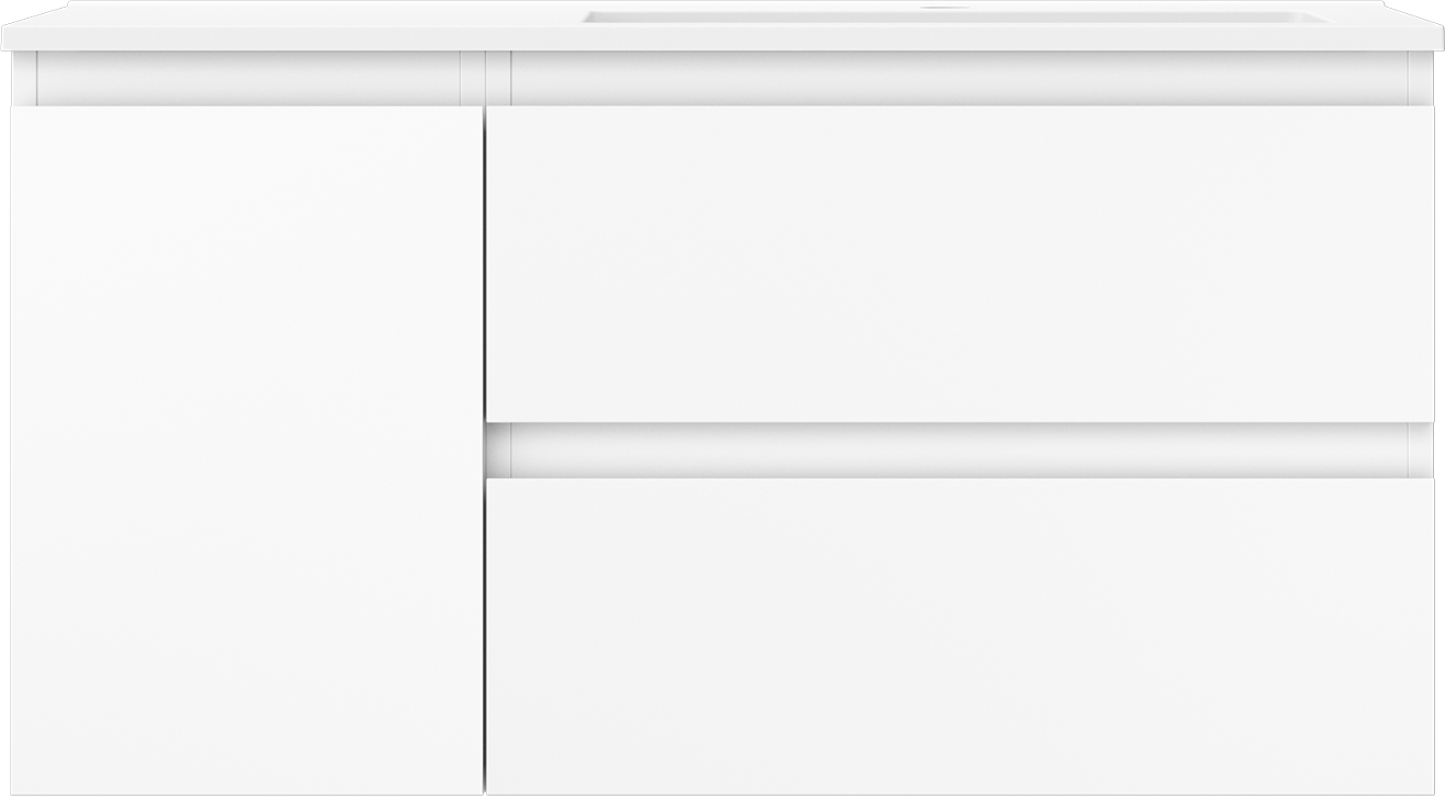 Decupajul în sertar este proiectat în așa fel încât să acomodeze sifonul, care este esențial în instalațiile de lavoare. Datorită acestui fapt, mobila poate fi montată complet funcțională, fără a fi necesară renunțarea la spațiul din sertar în favoarea instalației.