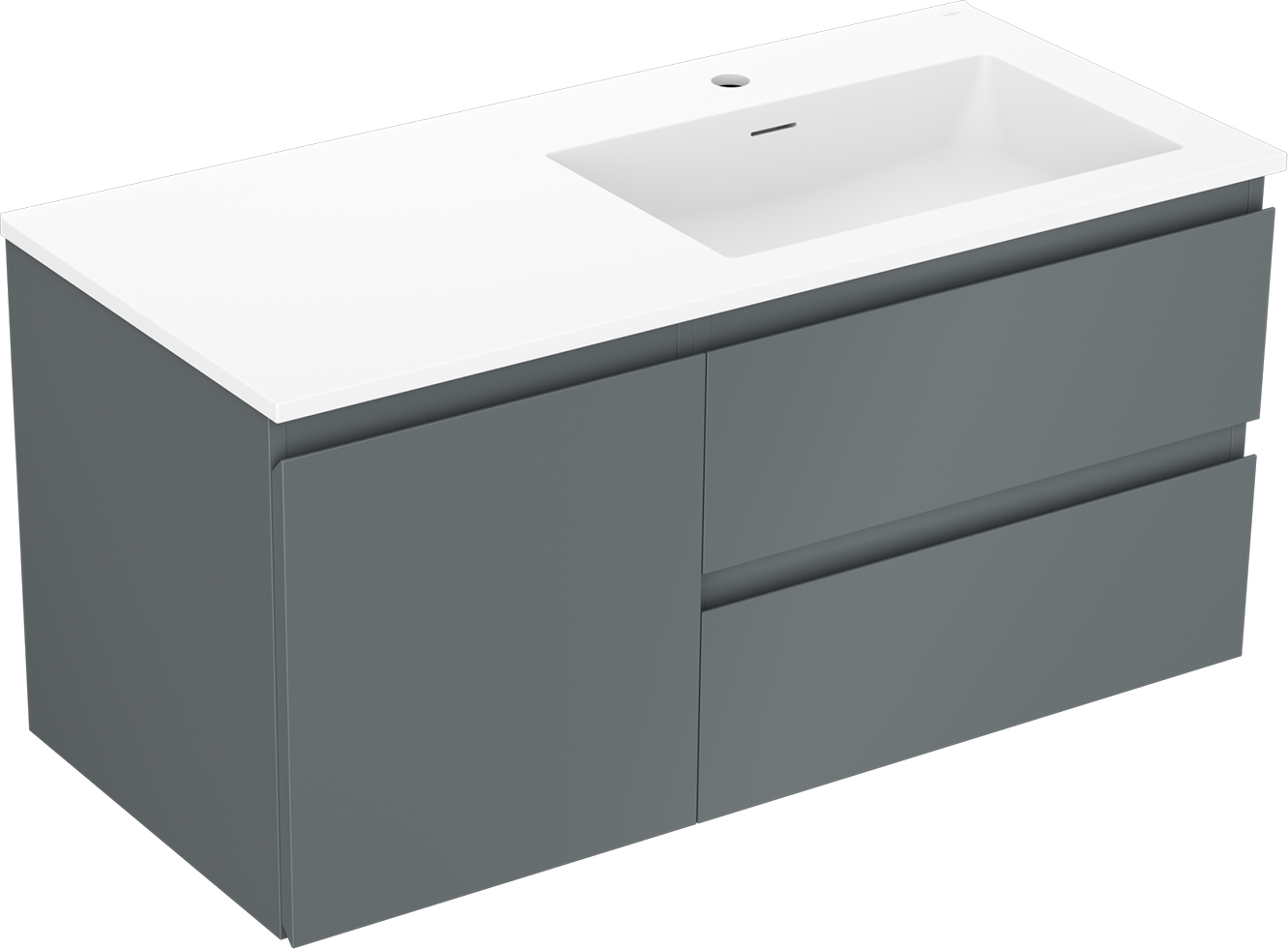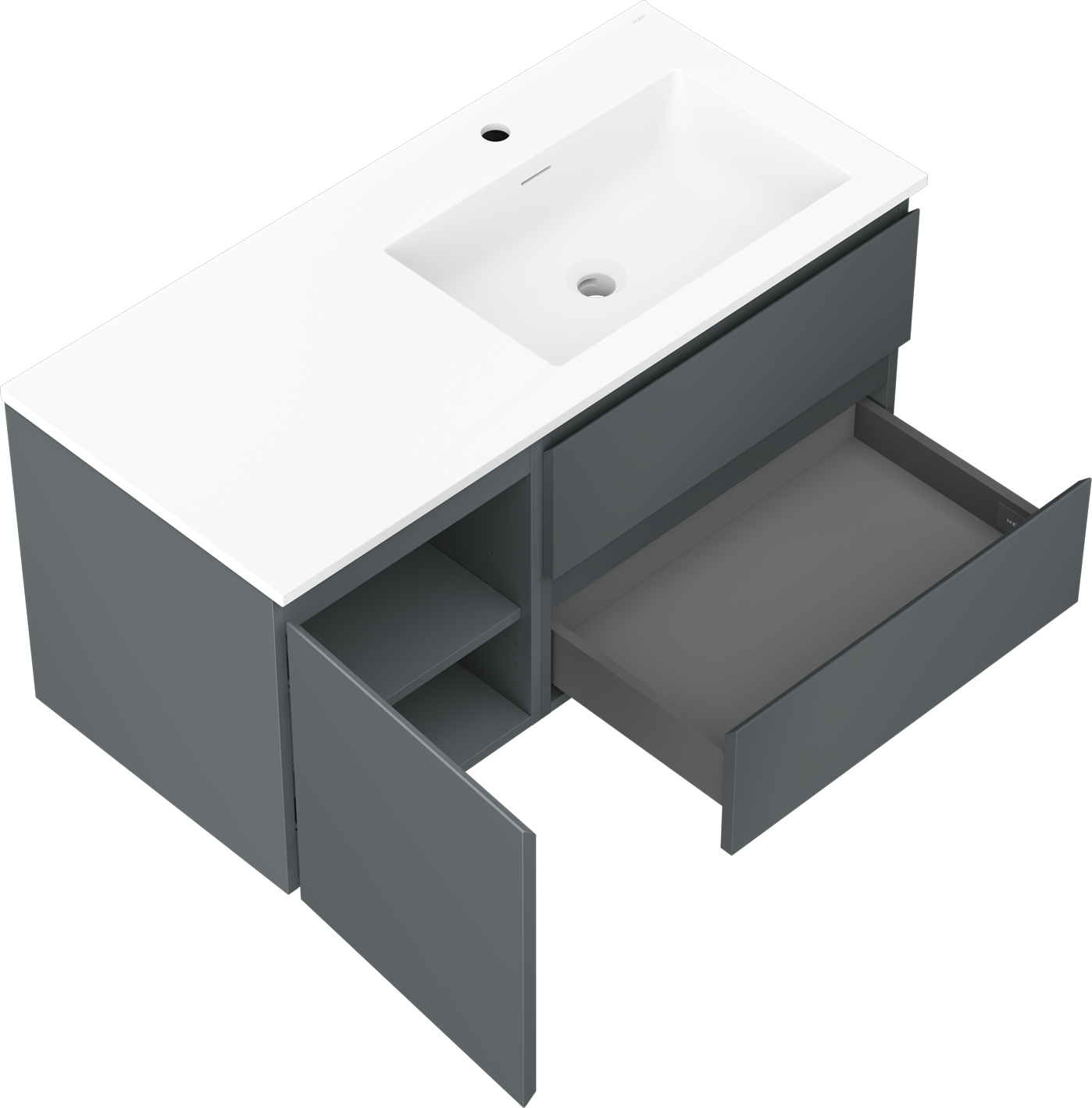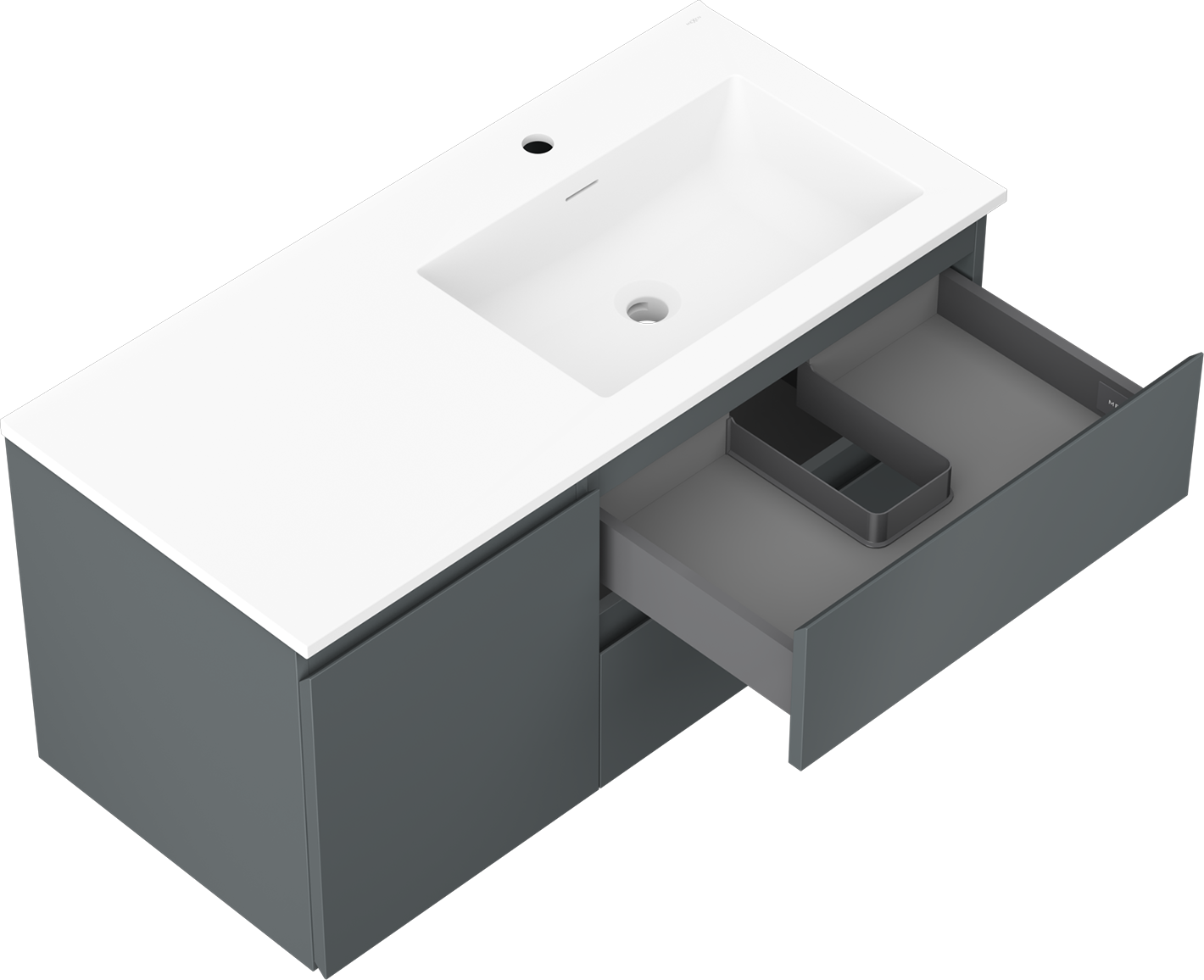 Decupajul în sertar este proiectat în așa fel încât să acomodeze sifonul, care este esențial în instalațiile de lavoare. Datorită acestui fapt, mobila poate fi montată complet funcțională, fără a fi necesară renunțarea la spațiul din sertar în favoarea instalației.