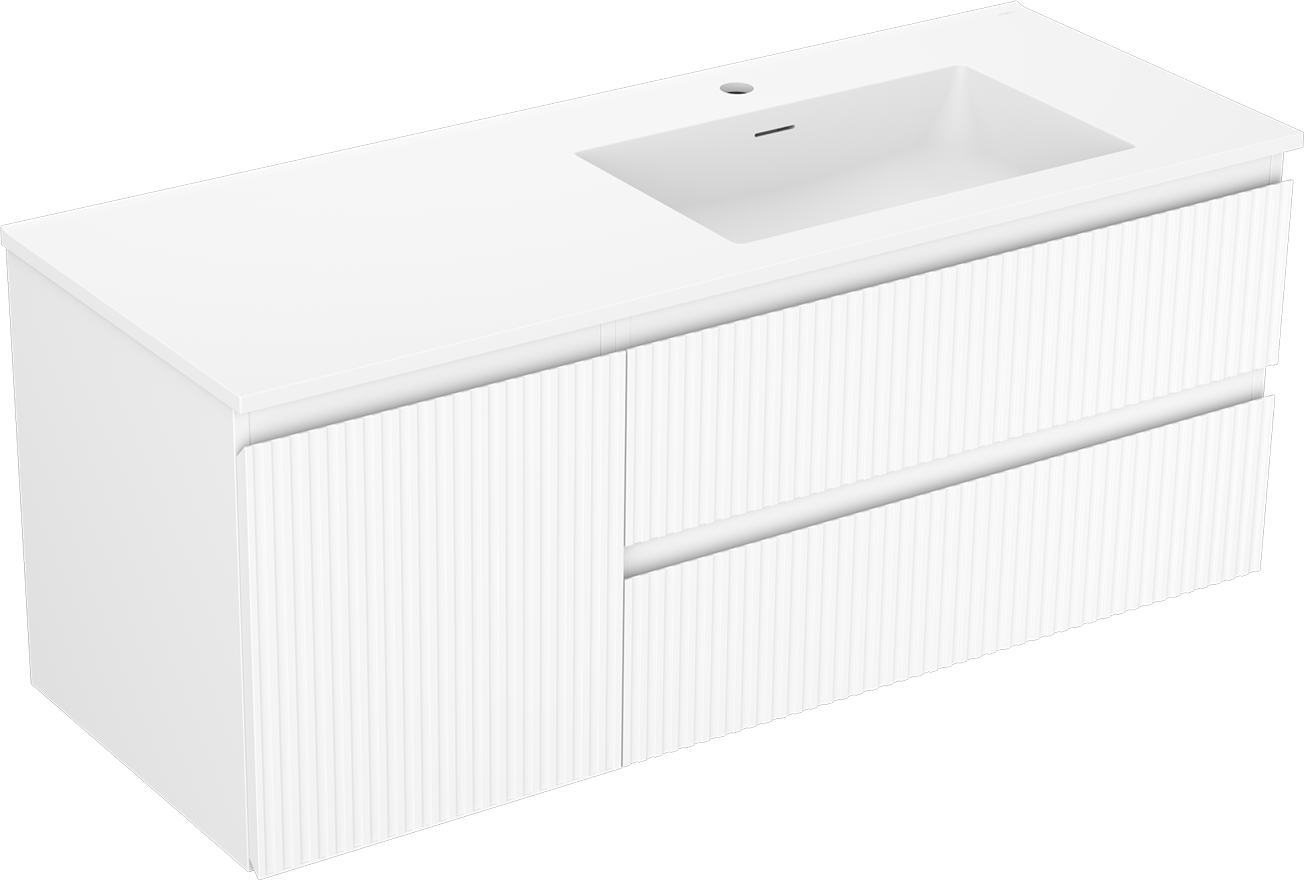 Decupajul în sertar este proiectat în așa fel încât să acomodeze sifonul, care este esențial în instalațiile de lavoare. Datorită acestui fapt, mobila poate fi montată complet funcțională, fără a fi necesară renunțarea la spațiul din sertar în favoarea instalației.