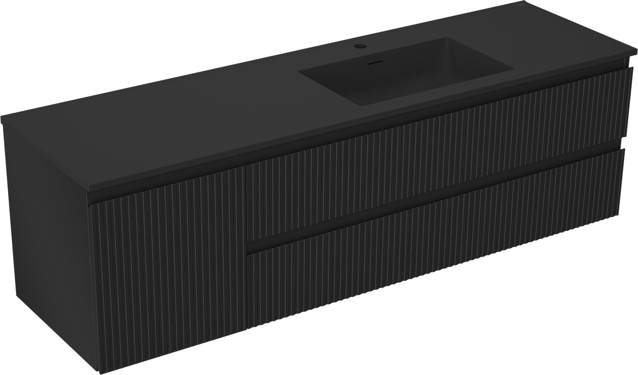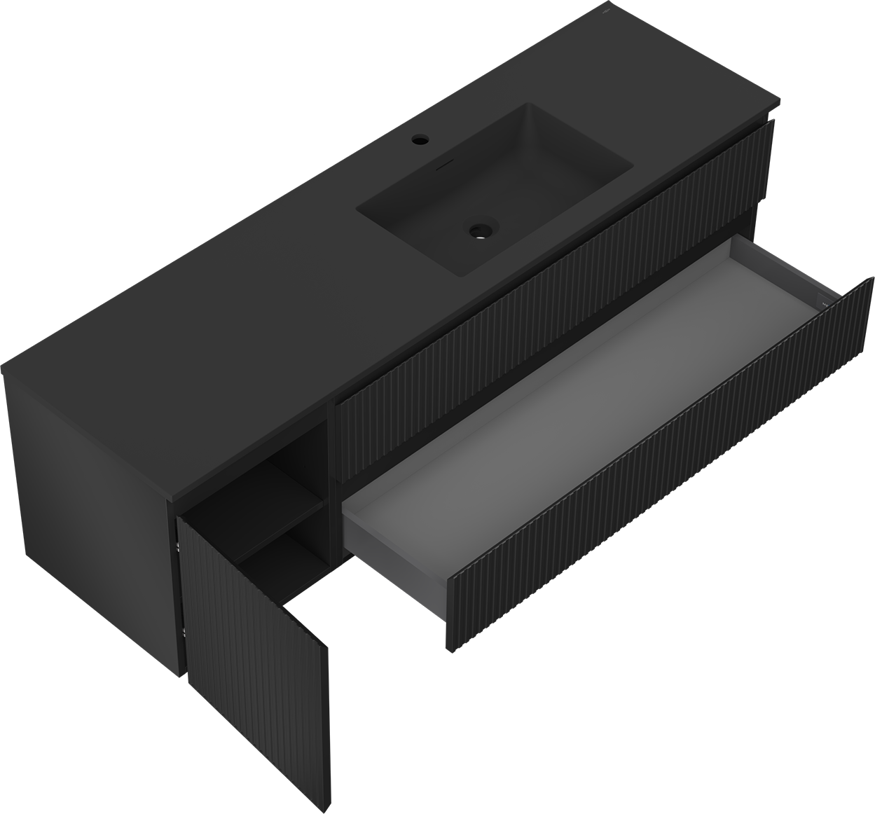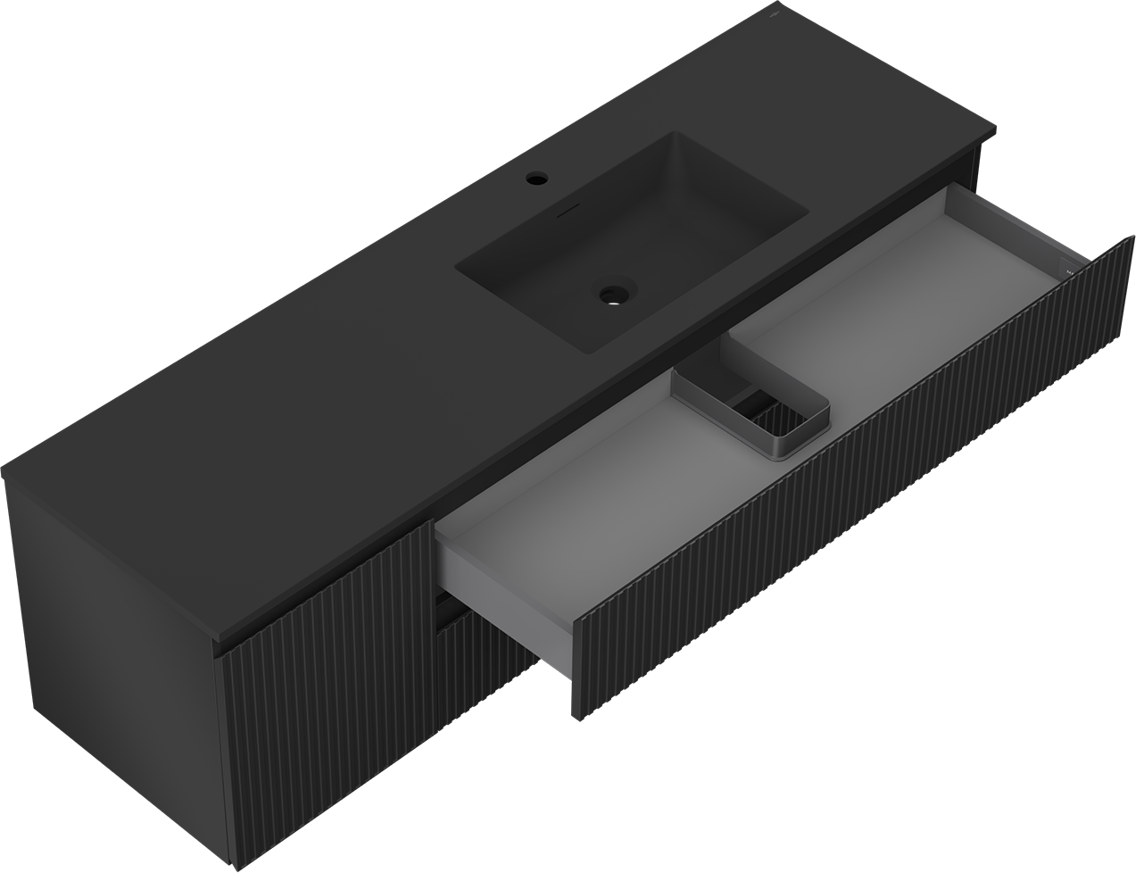 Decupajul în sertar este proiectat în așa fel încât să acomodeze sifonul, care este esențial în instalațiile de lavoare. Datorită acestui fapt, mobila poate fi montată complet funcțională, fără a fi necesară renunțarea la spațiul din sertar în favoarea instalației.