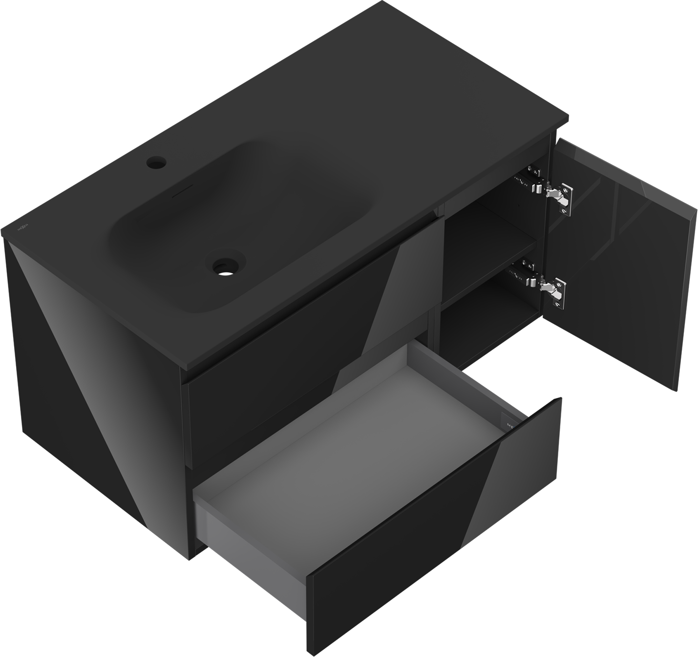 Decupajul în sertar este proiectat în așa fel încât să acomodeze sifonul, care este esențial în instalațiile de lavoare. Datorită acestui fapt, mobila poate fi montată complet funcțională, fără a fi necesară renunțarea la spațiul din sertar în favoarea instalației.