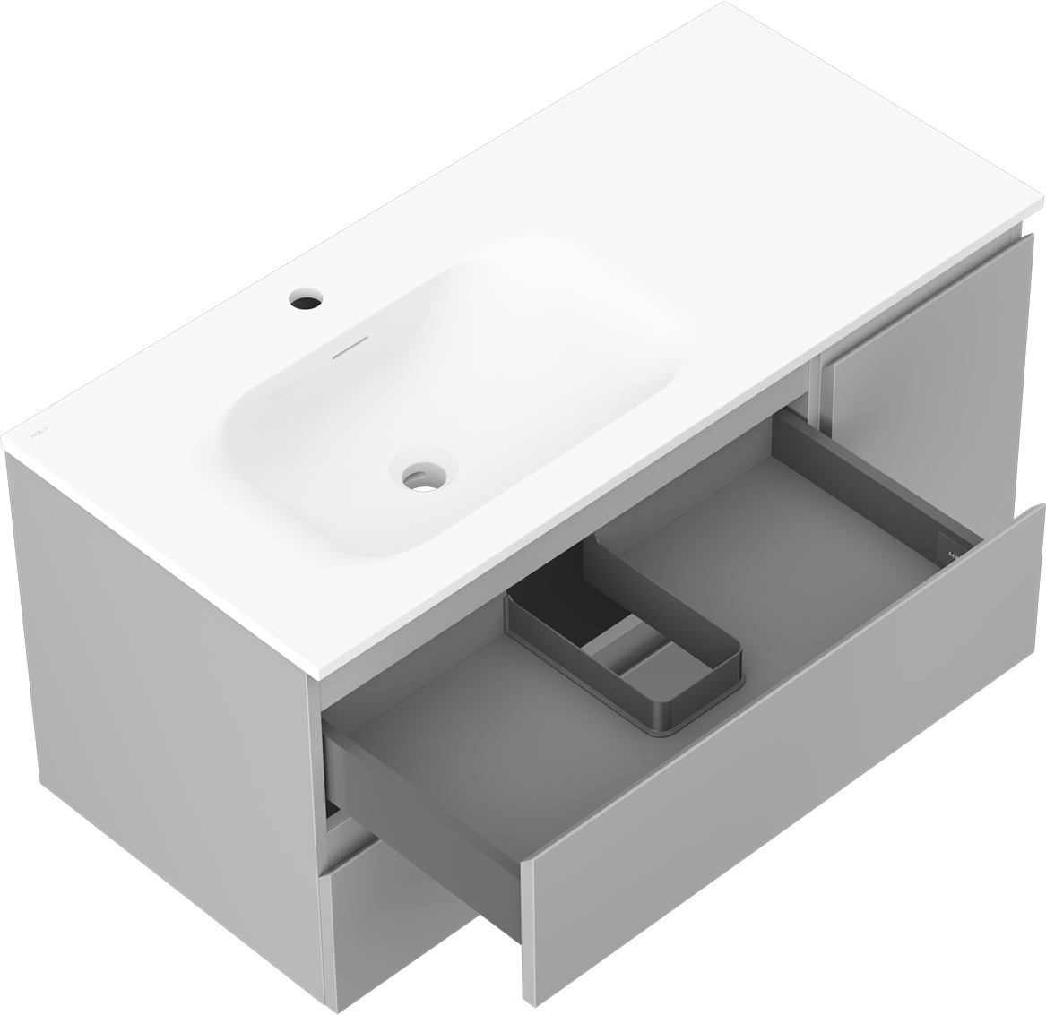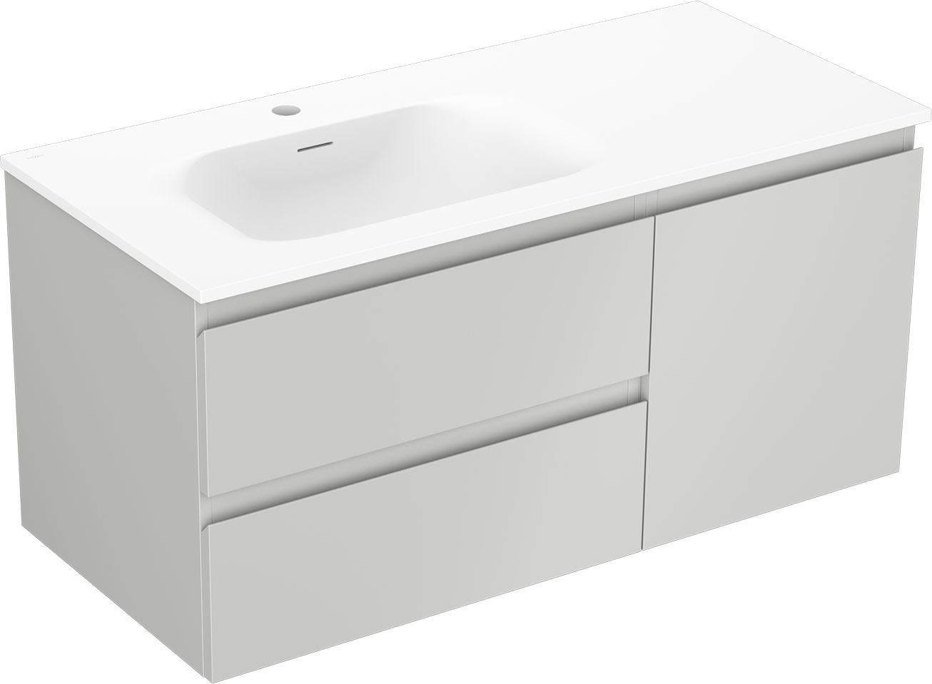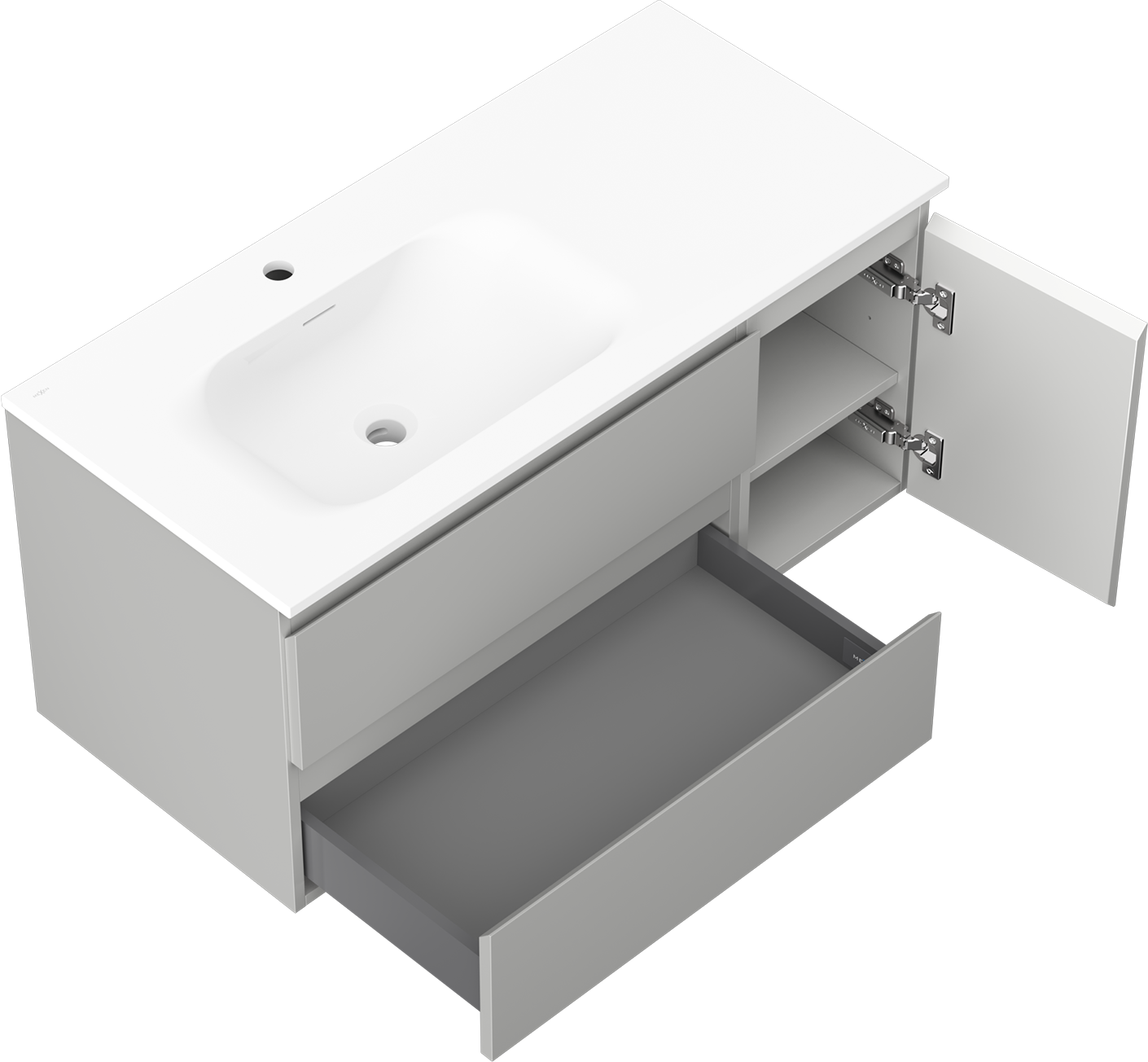 Mexen Orio dulap baie 100 cm cu chiuvetă Vela stângă, 2 sertare, 1 ușă, mat gri/alb mat - 91A13-10047-3-BBFFF62-W23L01