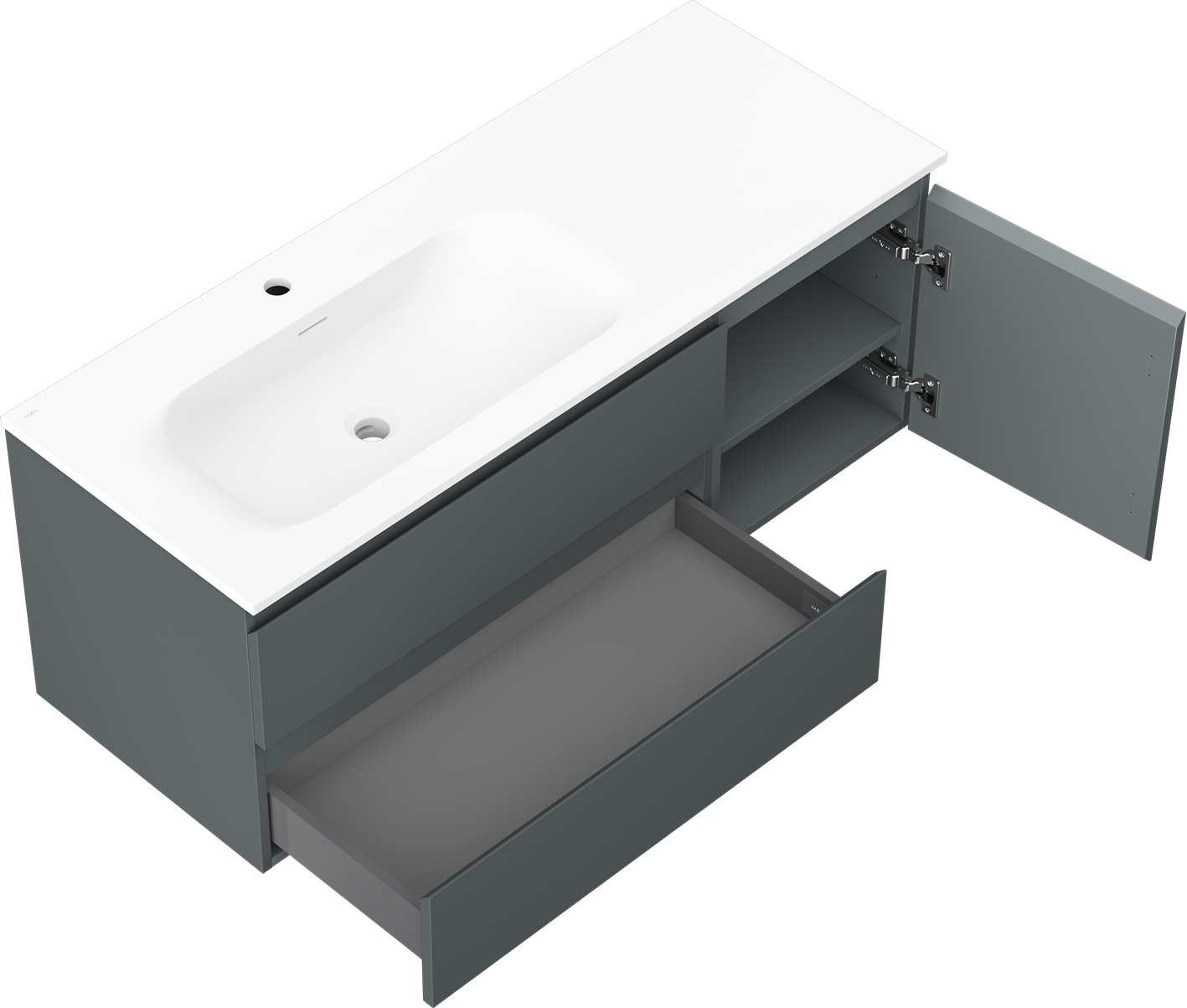Mobilierul nostru modular pentru baie poate fi combinat în diverse configurații de culori, permițând personalizarea completă. Puteți alege atât aspectul, cât și funcțiile fiecărui element, ceea ce permite adaptarea mobilierului la preferințele dvs. stilistice și funcționale.