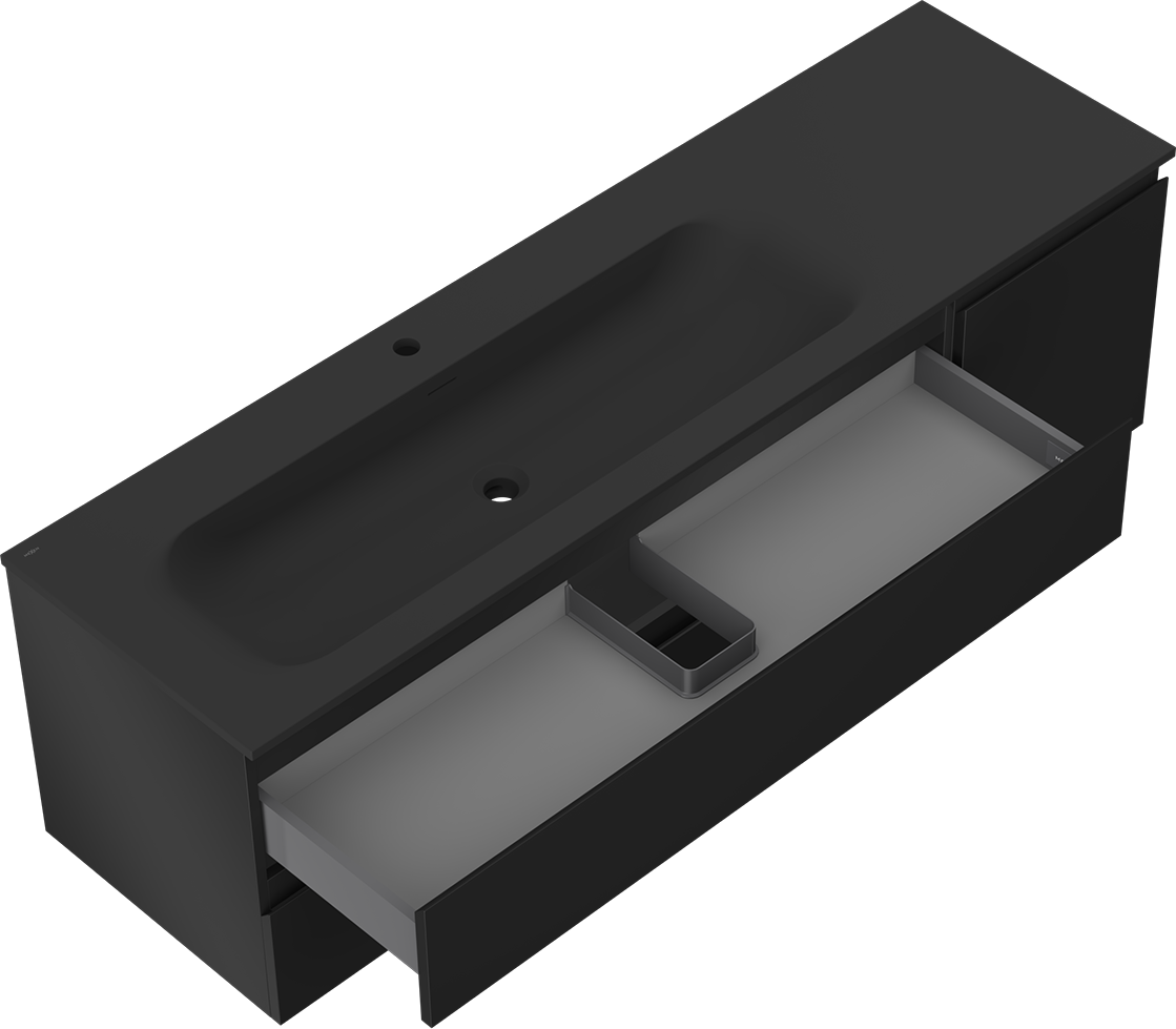Decupajul în sertar este proiectat în așa fel încât să acomodeze sifonul, care este esențial în instalațiile de lavoare. Datorită acestui fapt, mobila poate fi montată complet funcțională, fără a fi necesară renunțarea la spațiul din sertar în favoarea instalației.