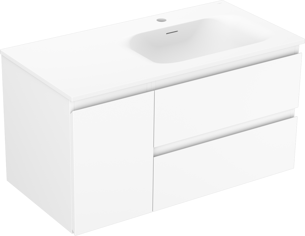 Decupajul în sertar este proiectat în așa fel încât să acomodeze sifonul, care este esențial în instalațiile de lavoare. Datorită acestui fapt, mobila poate fi montată complet funcțională, fără a fi necesară renunțarea la spațiul din sertar în favoarea instalației.