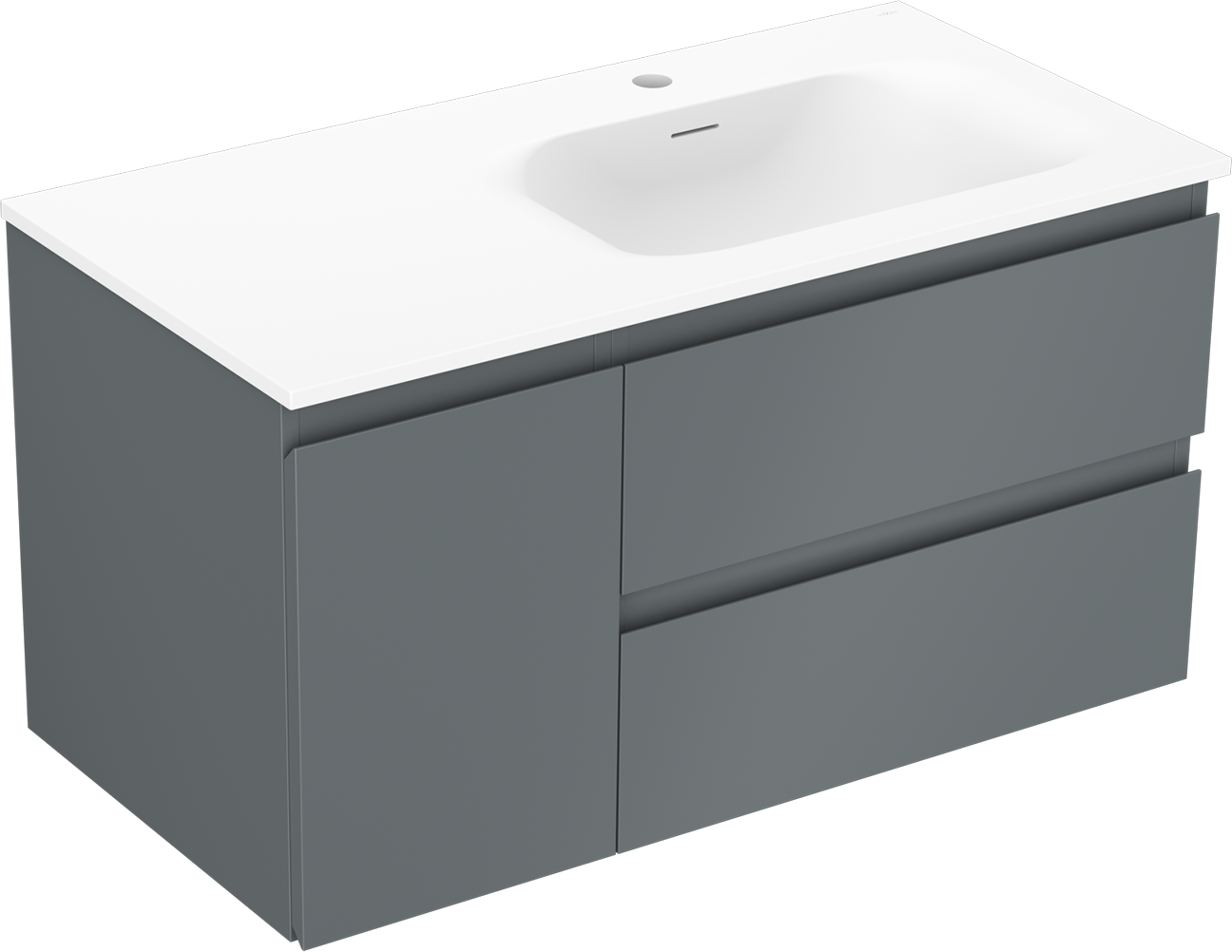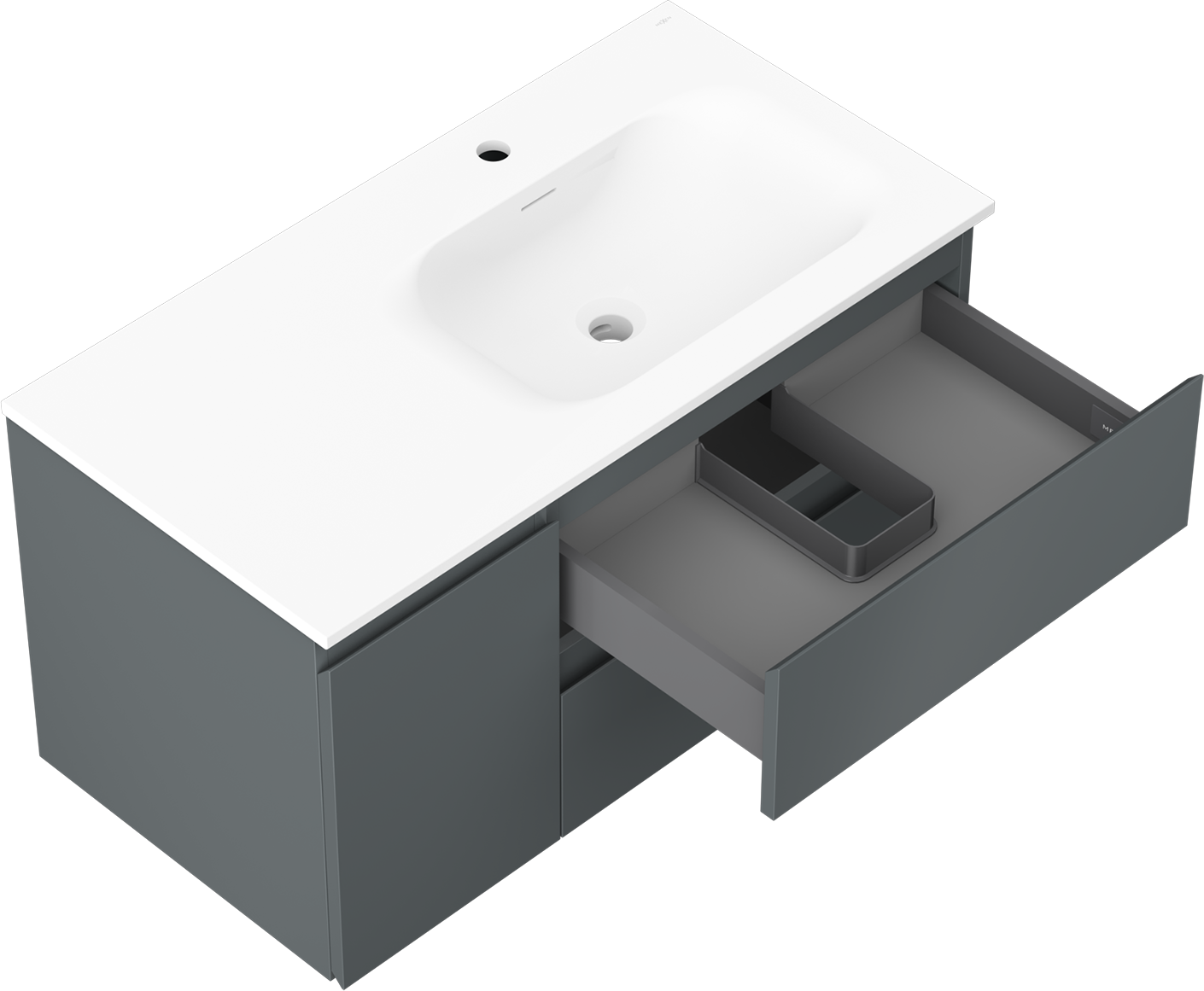 Decupajul în sertar este proiectat în așa fel încât să acomodeze sifonul, care este esențial în instalațiile de lavoare. Datorită acestui fapt, mobila poate fi montată complet funcțională, fără a fi necesară renunțarea la spațiul din sertar în favoarea instalației.