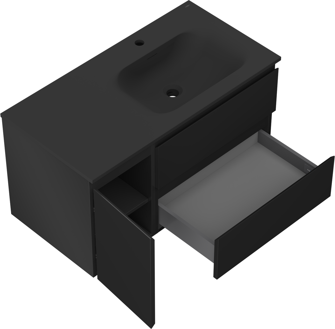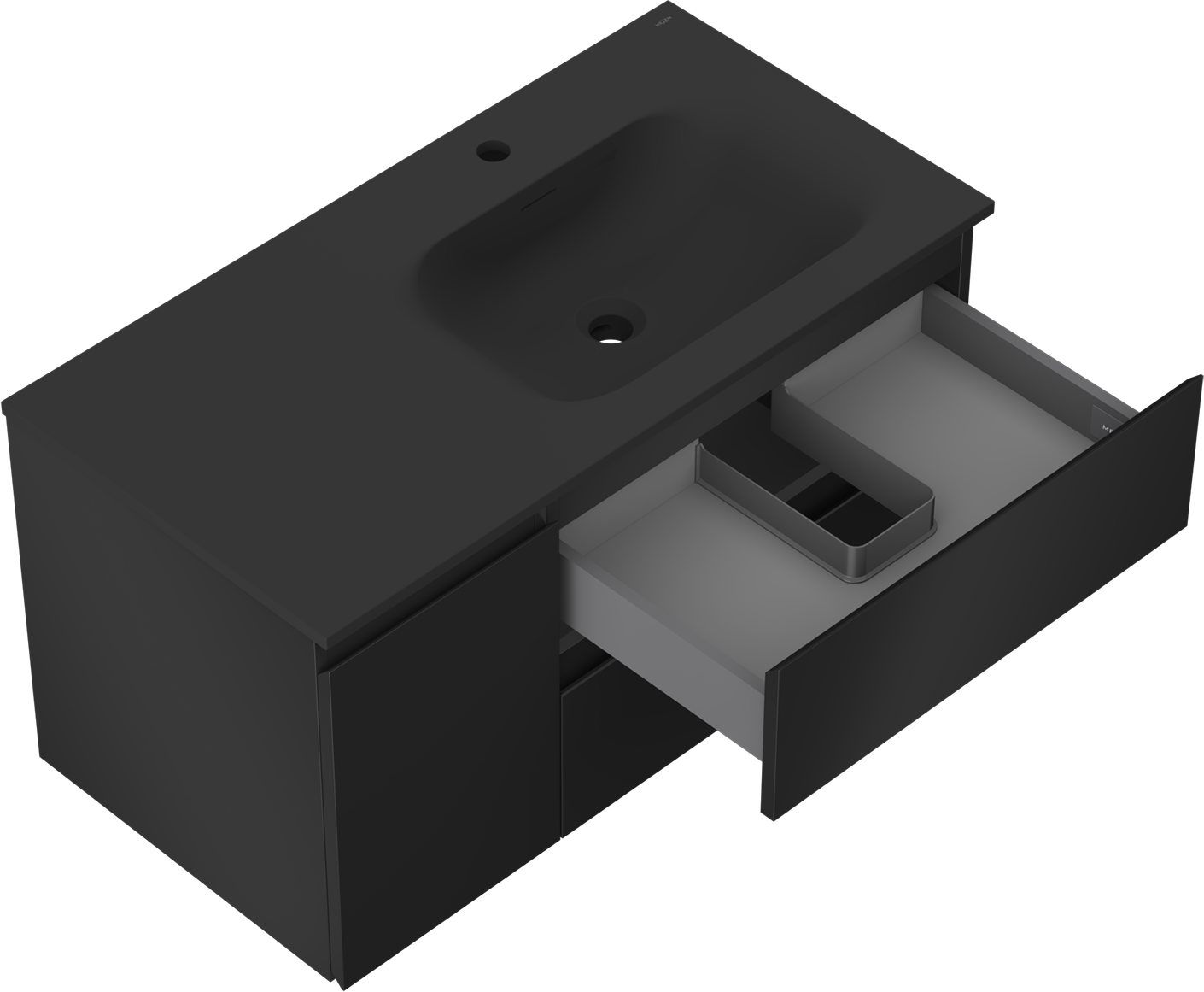 Decupajul în sertar este proiectat în așa fel încât să acomodeze sifonul, care este esențial în instalațiile de lavoare. Datorită acestui fapt, mobila poate fi montată complet funcțională, fără a fi necesară renunțarea la spațiul din sertar în favoarea instalației.