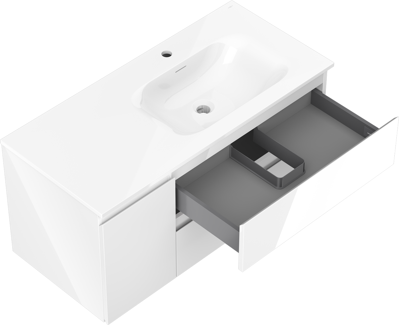 Mexen Orio dulap baie 100 cm cu lavoar Vela dreapta, 2S, 1D, alb lucios - 91A13-10047-3-BBFFF00-W23P00