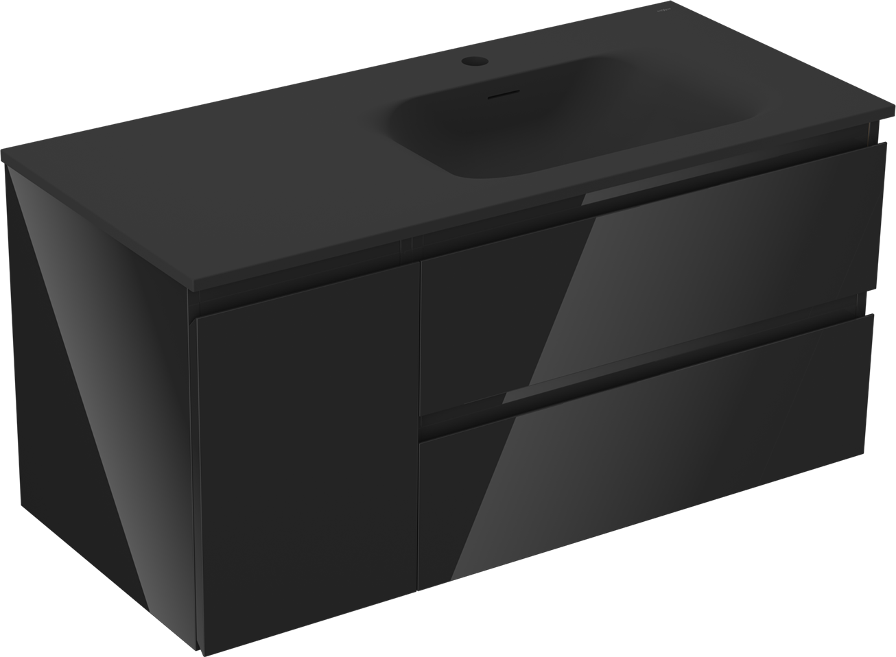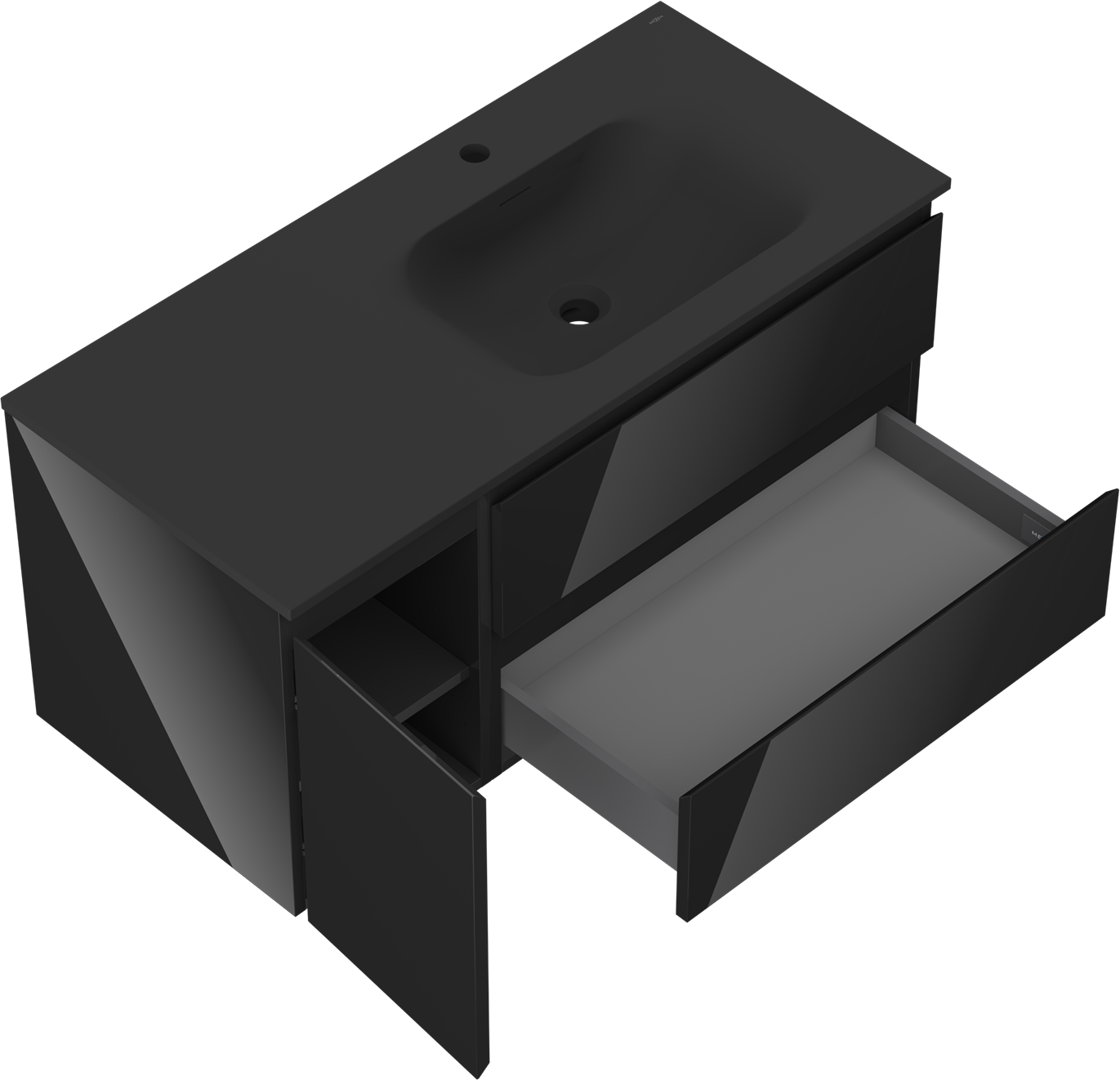 Mexen Orio dulap de baie 100 cm cu chiuvetă Vela dreapta, 2S, 1D, negru lucios/negru mat - 91A13-10047-3-BBFFF70-W23P71