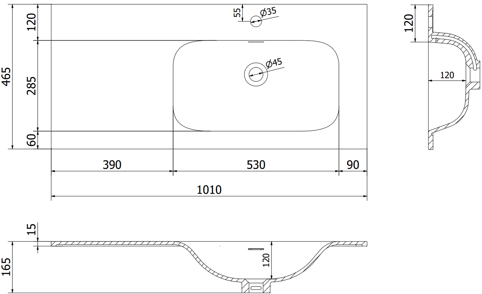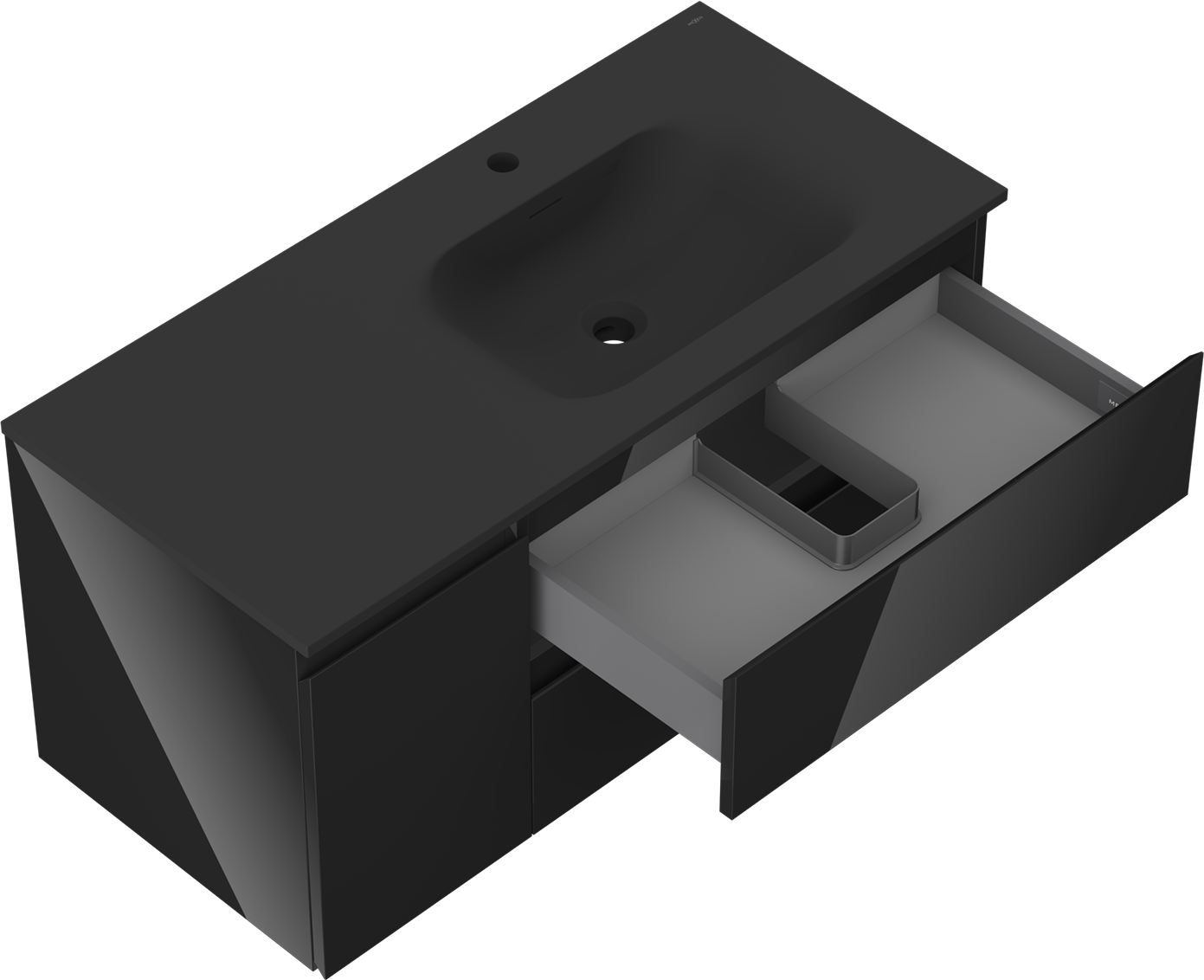 Decupajul în sertar este proiectat în așa fel încât să acomodeze sifonul, care este esențial în instalațiile de lavoare. Datorită acestui fapt, mobila poate fi montată complet funcțională, fără a fi necesară renunțarea la spațiul din sertar în favoarea instalației.