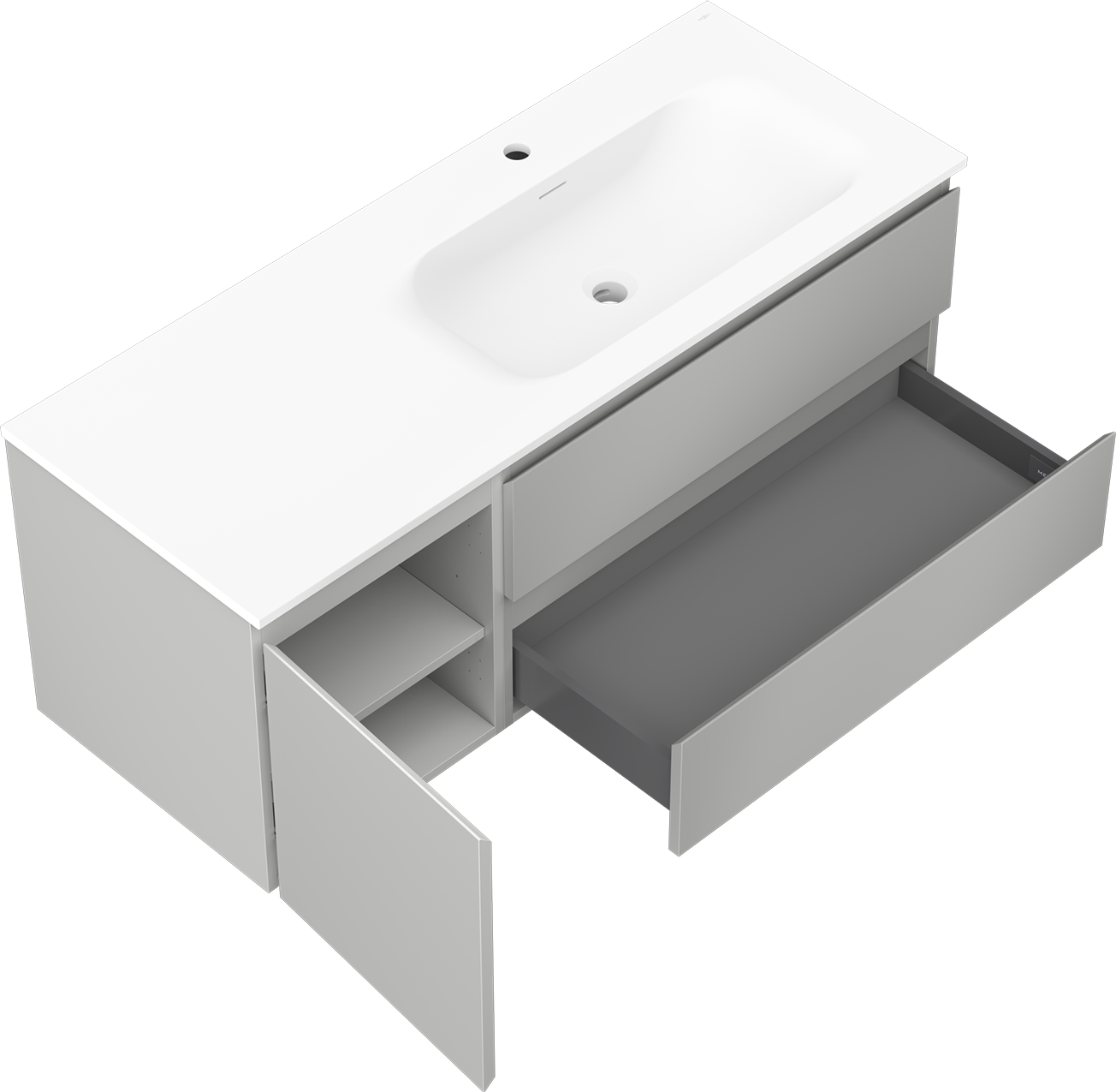 Mobilierul nostru modular pentru baie poate fi combinat în diverse configurații de culori, permițând personalizarea completă. Puteți alege atât aspectul, cât și funcțiile fiecărui element, ceea ce permite adaptarea mobilierului la preferințele dvs. stilistice și funcționale.