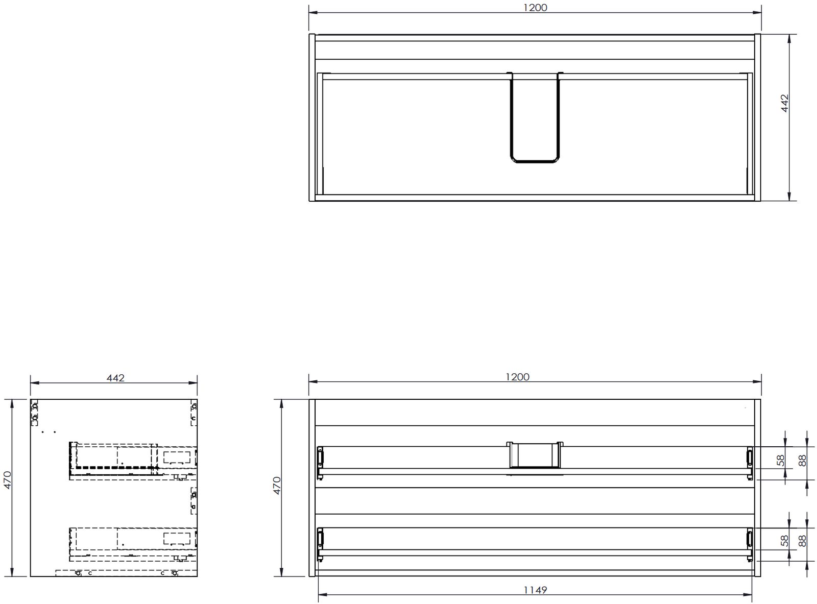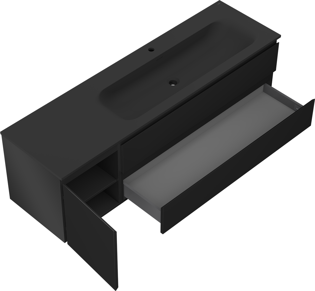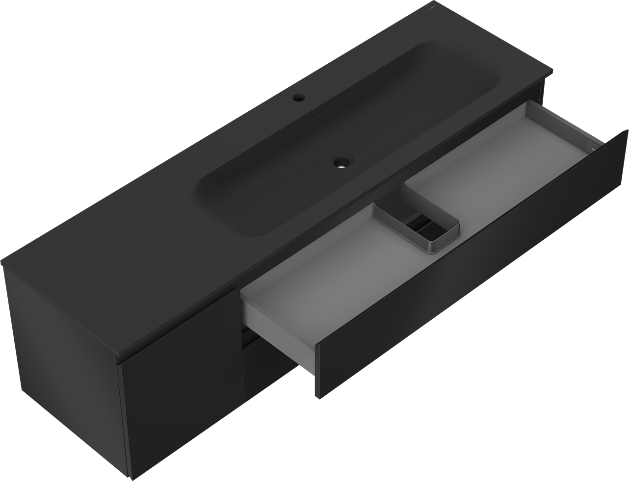 Decupajul în sertar este proiectat în așa fel încât să acomodeze sifonul, care este esențial în instalațiile de lavoare. Datorită acestui fapt, mobila poate fi montată complet funcțională, fără a fi necesară renunțarea la spațiul din sertar în favoarea instalației.