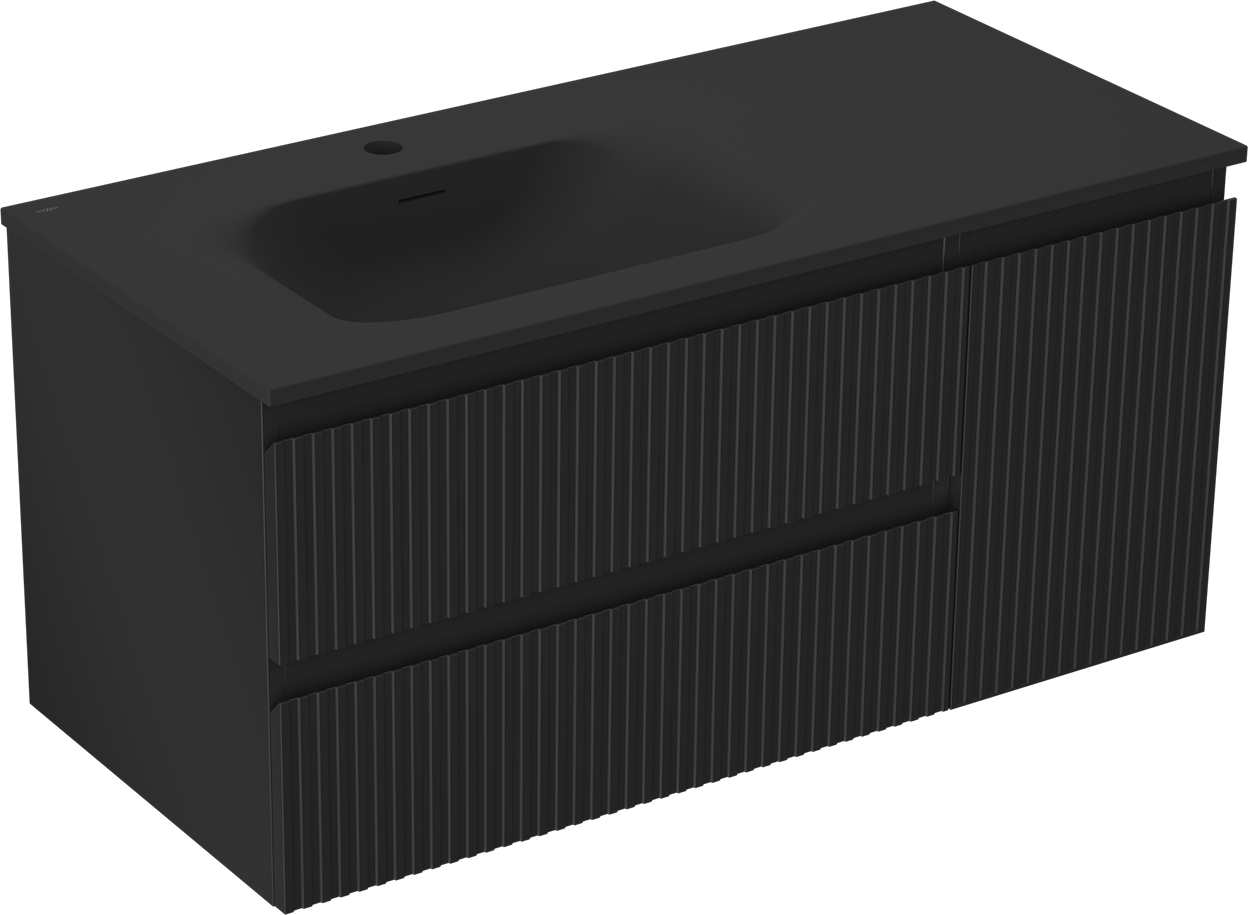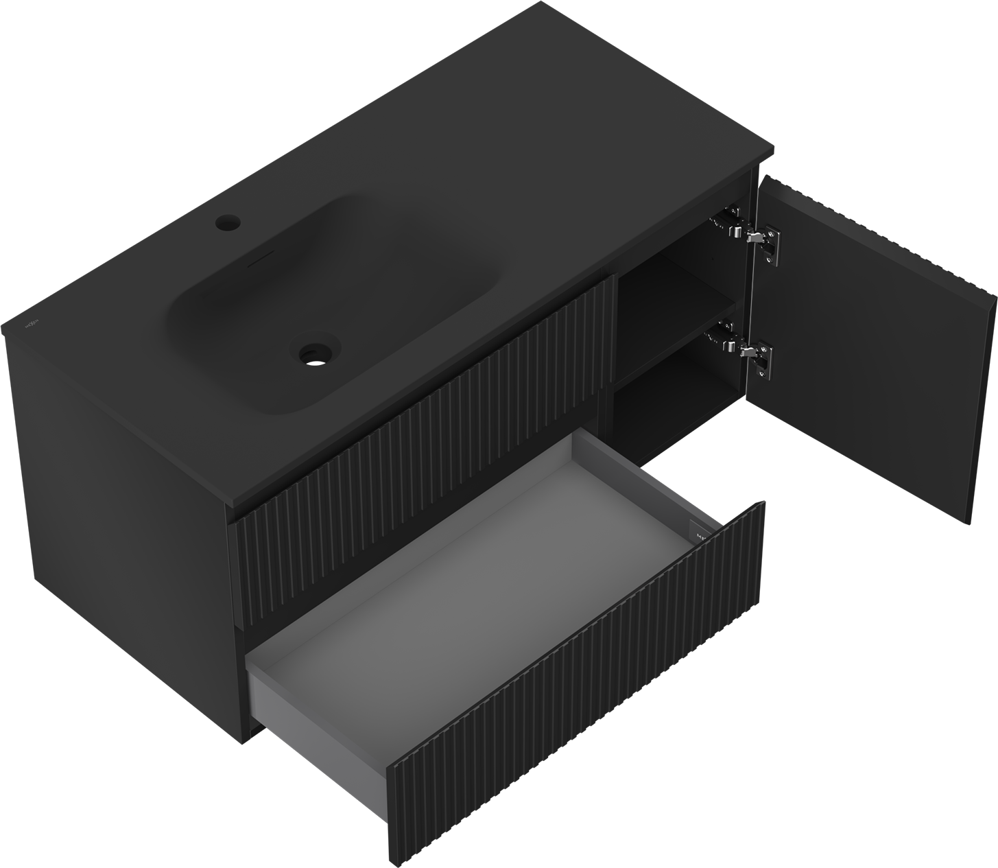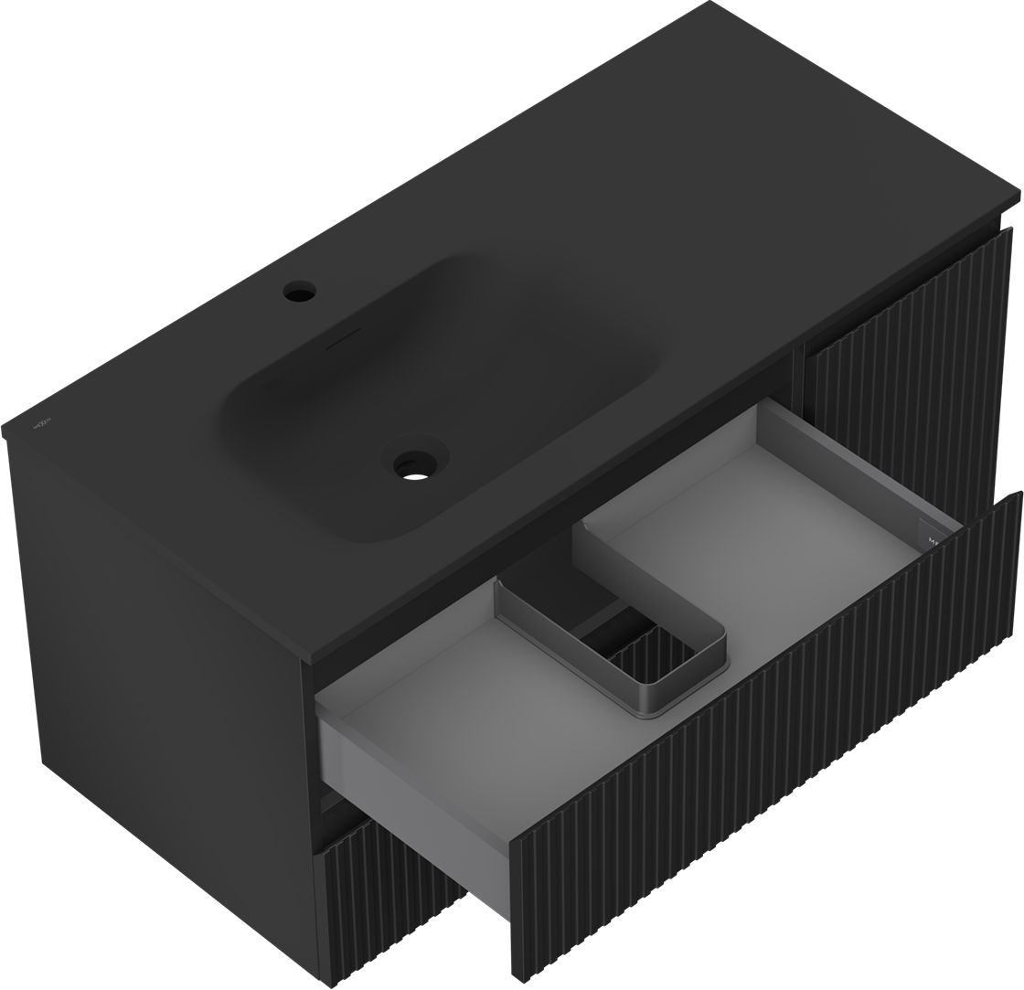 Decupajul în sertar este proiectat în așa fel încât să acomodeze sifonul, care este esențial în instalațiile de lavoare. Datorită acestui fapt, mobila poate fi montată complet funcțională, fără a fi necesară renunțarea la spațiul din sertar în favoarea instalației.