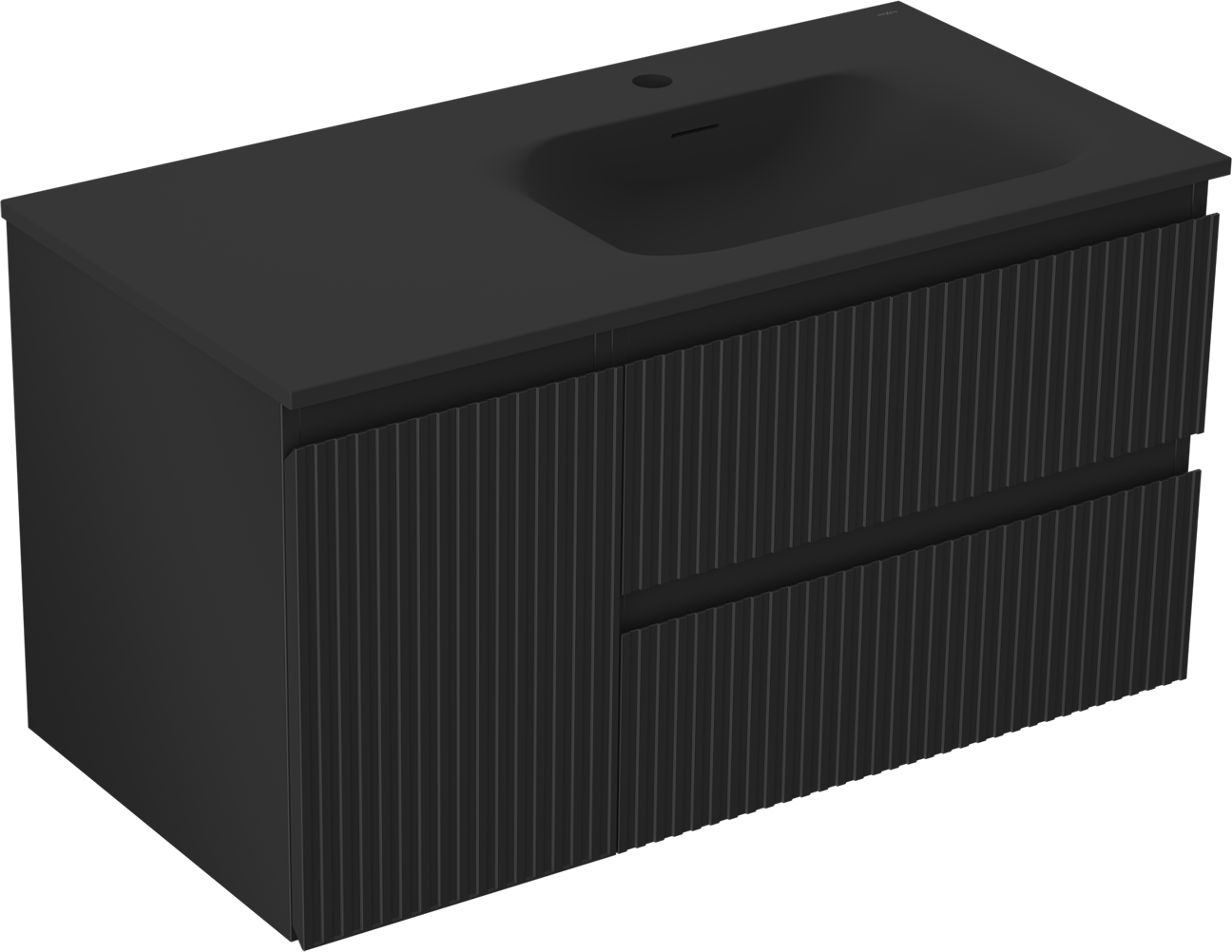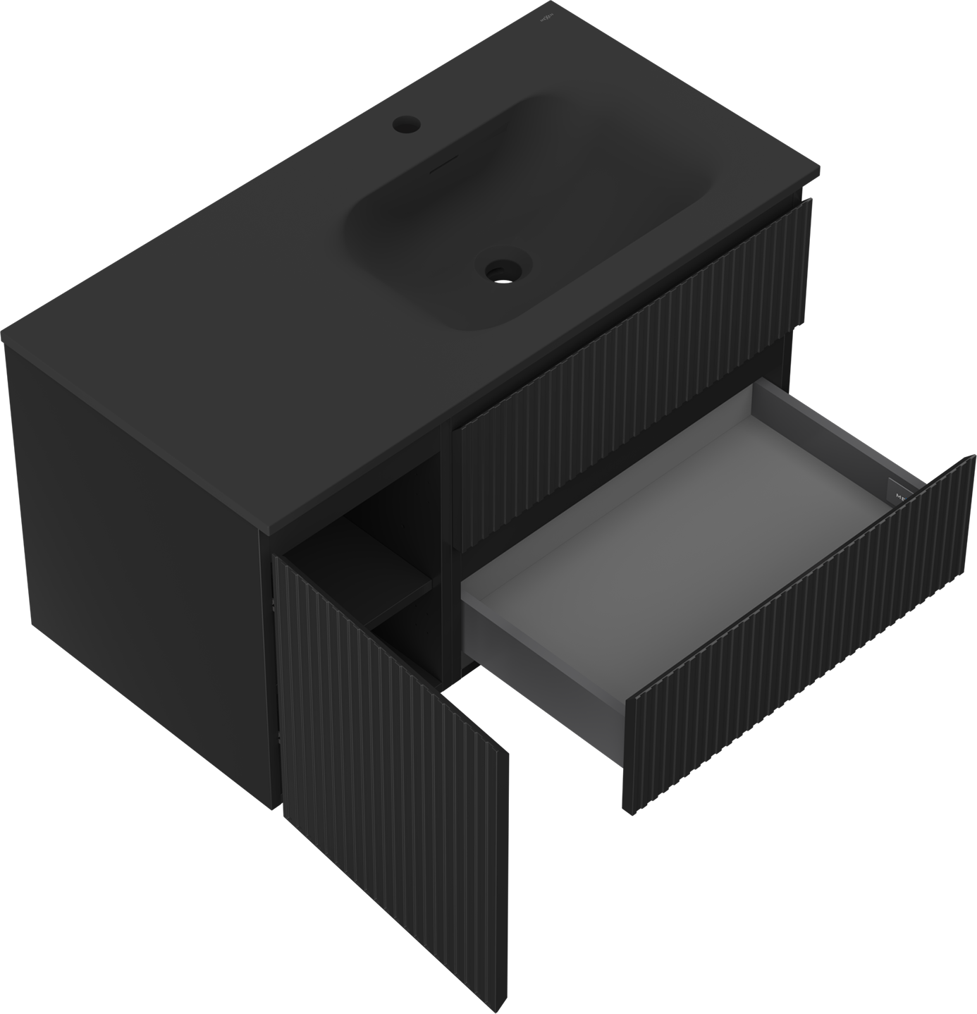 Decupajul în sertar este proiectat în așa fel încât să acomodeze sifonul, care este esențial în instalațiile de lavoare. Datorită acestui fapt, mobila poate fi montată complet funcțională, fără a fi necesară renunțarea la spațiul din sertar în favoarea instalației.