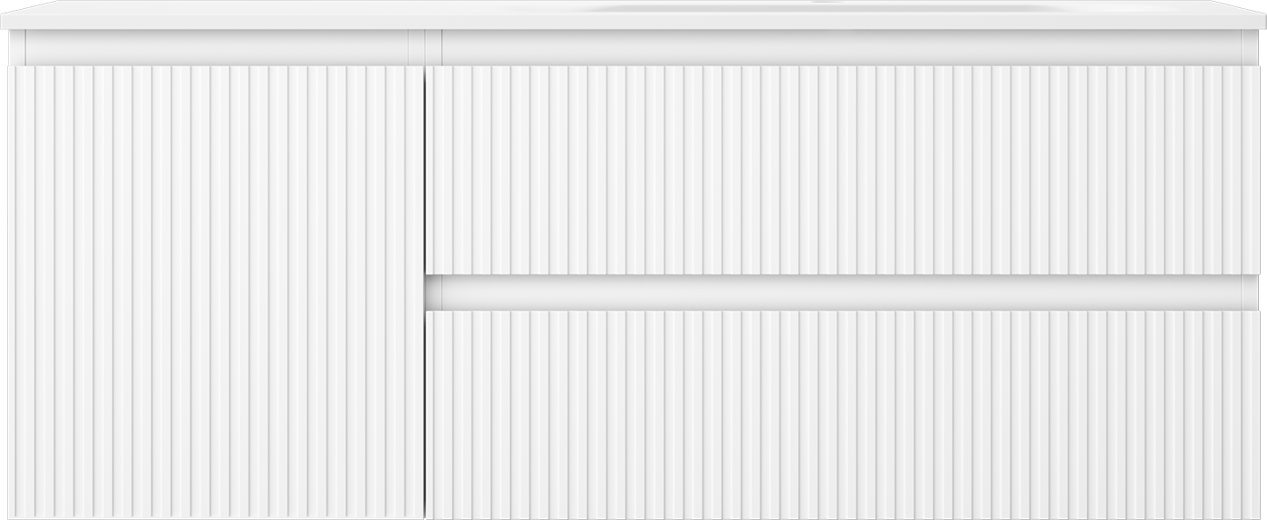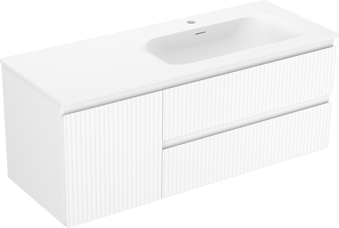 Decupajul în sertar este proiectat în așa fel încât să acomodeze sifonul, care este esențial în instalațiile de lavoare. Datorită acestui fapt, mobila poate fi montată complet funcțională, fără a fi necesară renunțarea la spațiul din sertar în favoarea instalației.