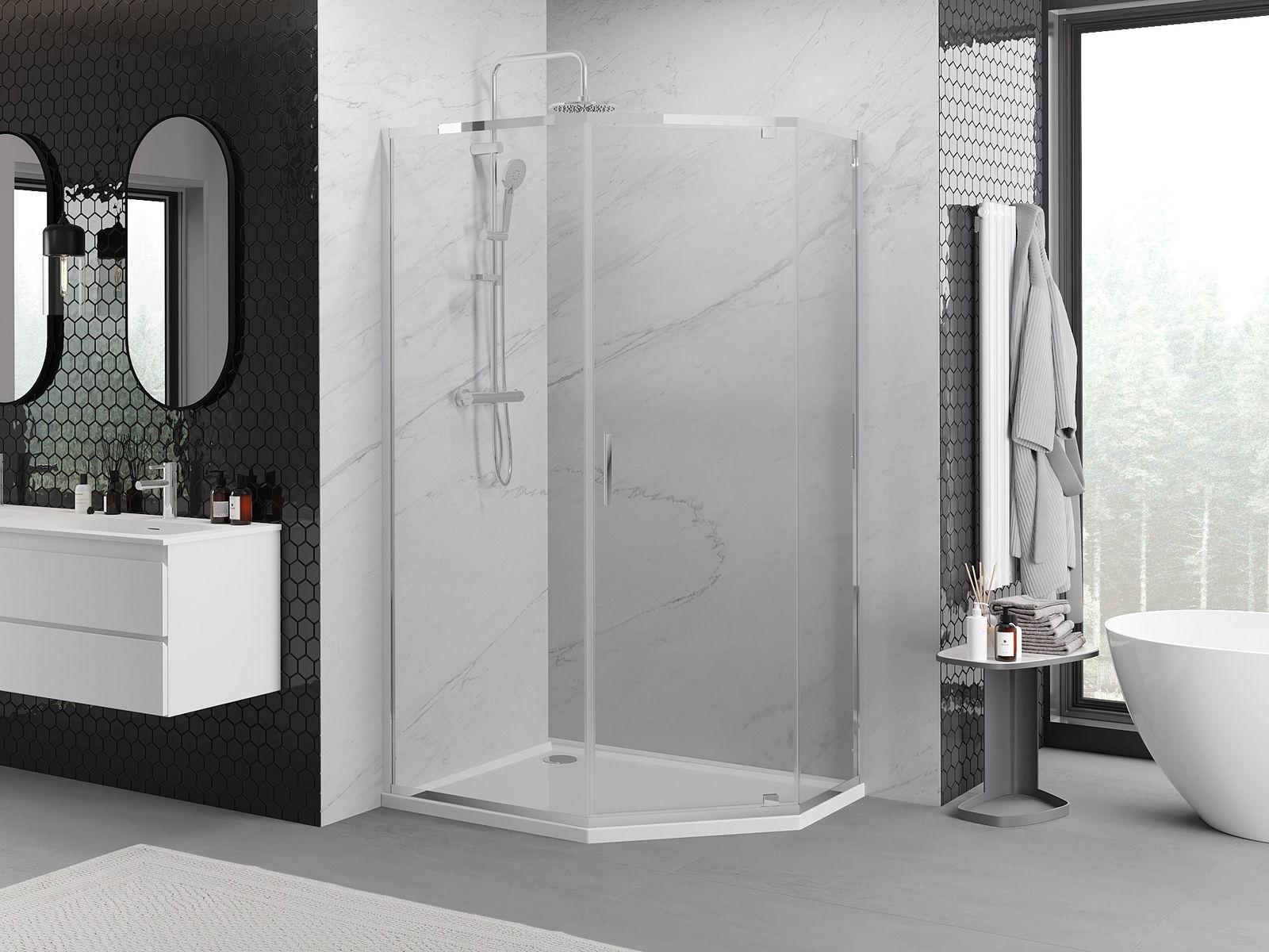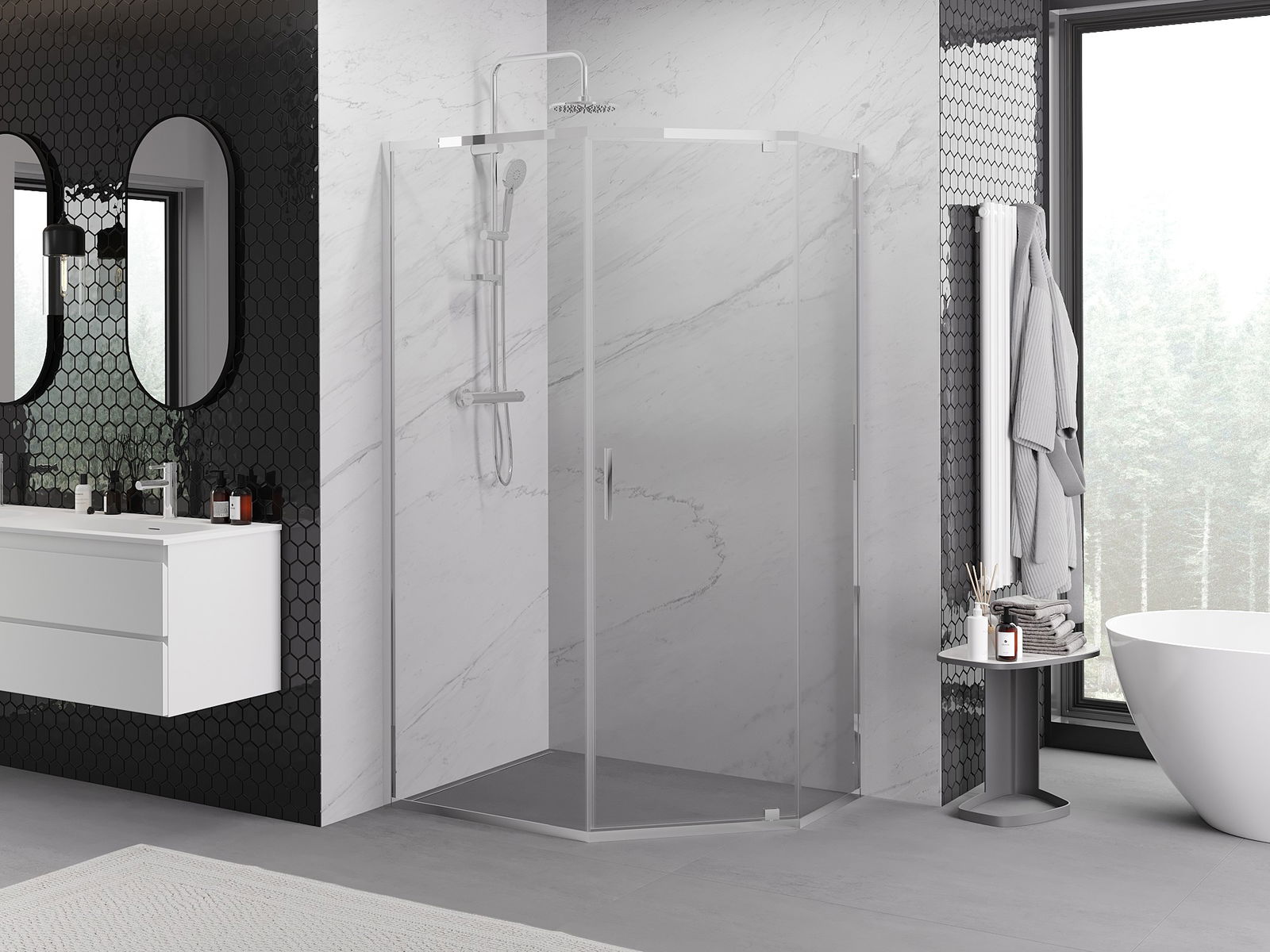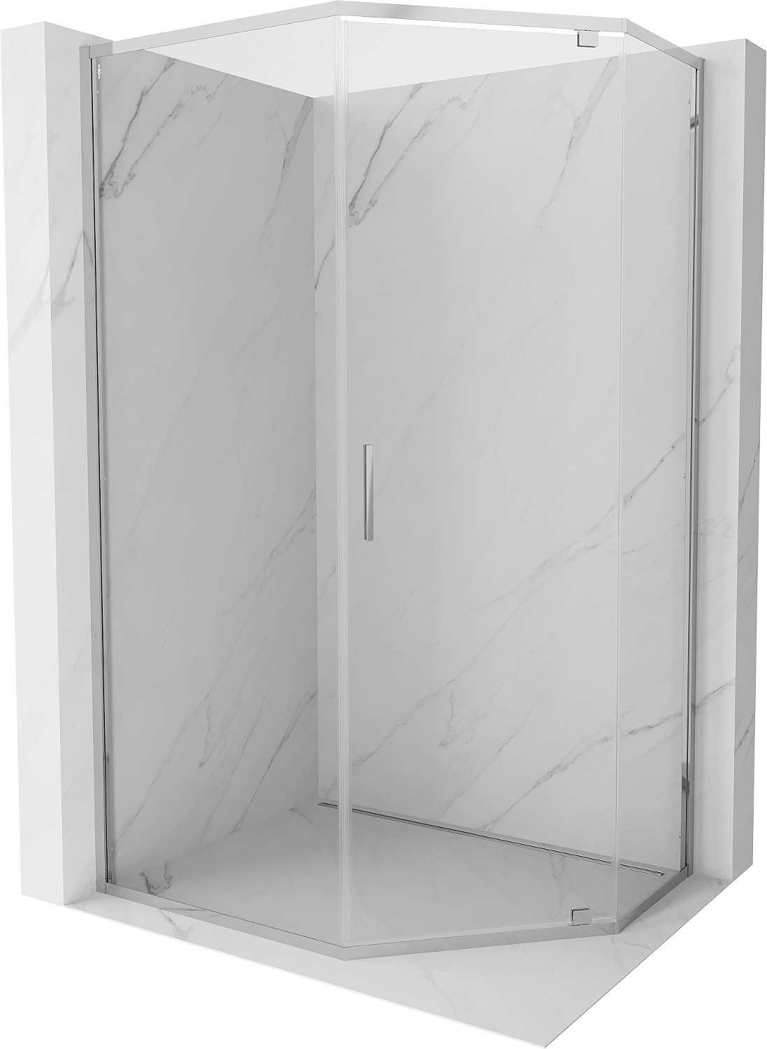 Mexen Exo cabina de duș pentagonală cu ușă batantă 100 x 80 cm, transparentă, crom - 812-100-080-01-00