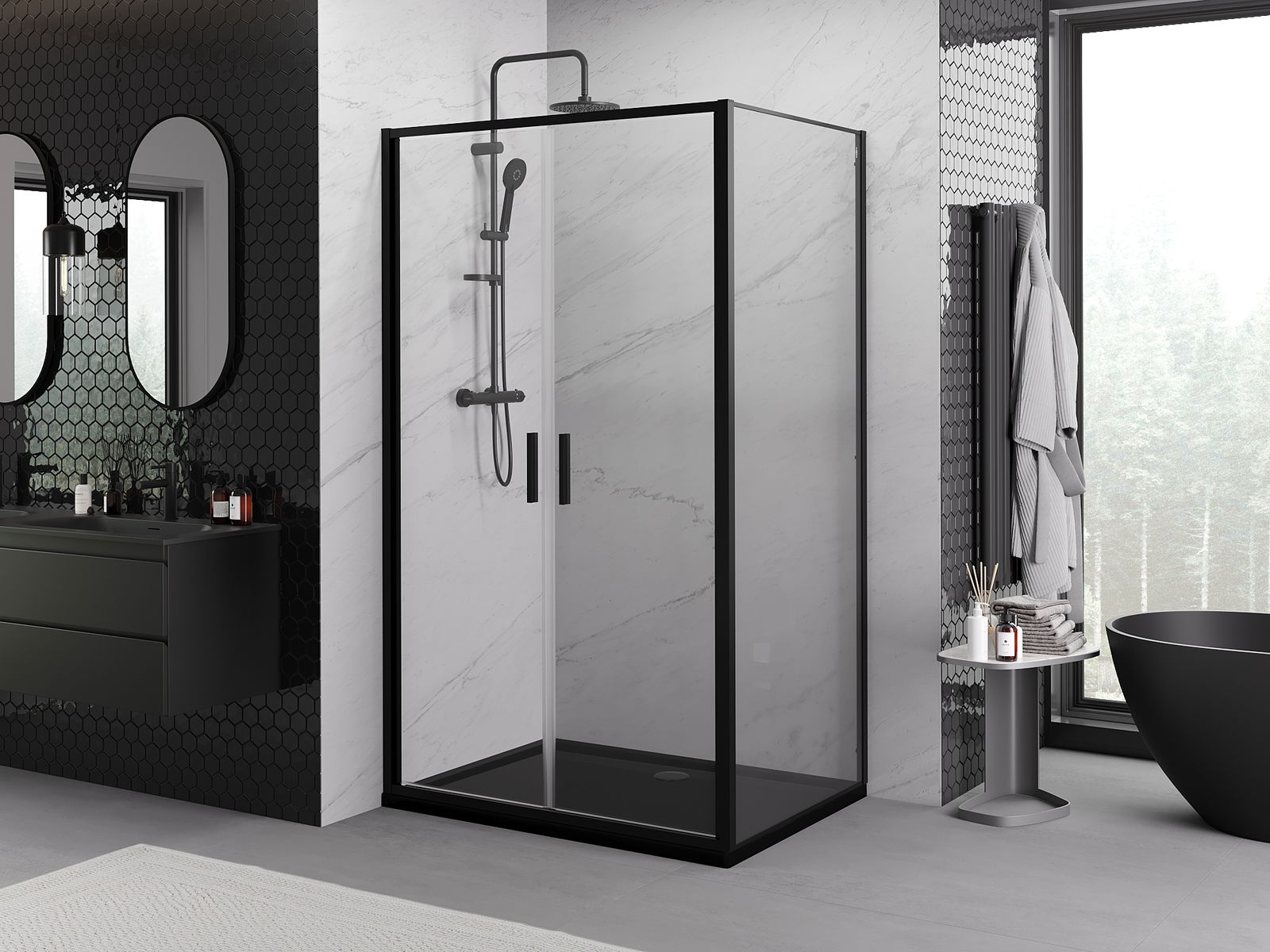 Mexen Exo cabina de duș cu ușă batantă 120 x 75 cm, transparentă, neagră - 814-120-075-70-00