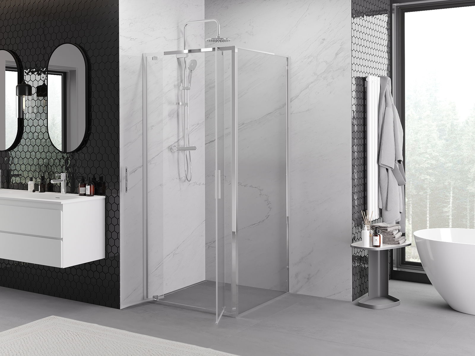 Mexen Exo cabina de duș cu ușă batantă 120 x 120 cm, transparentă, crom - 8182-120-120-01-00