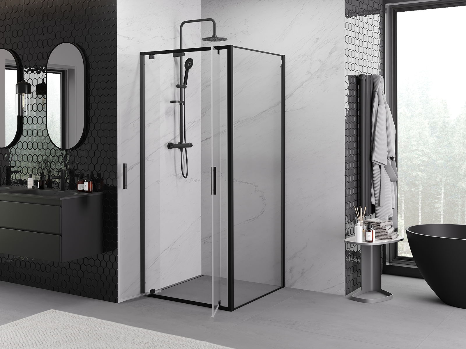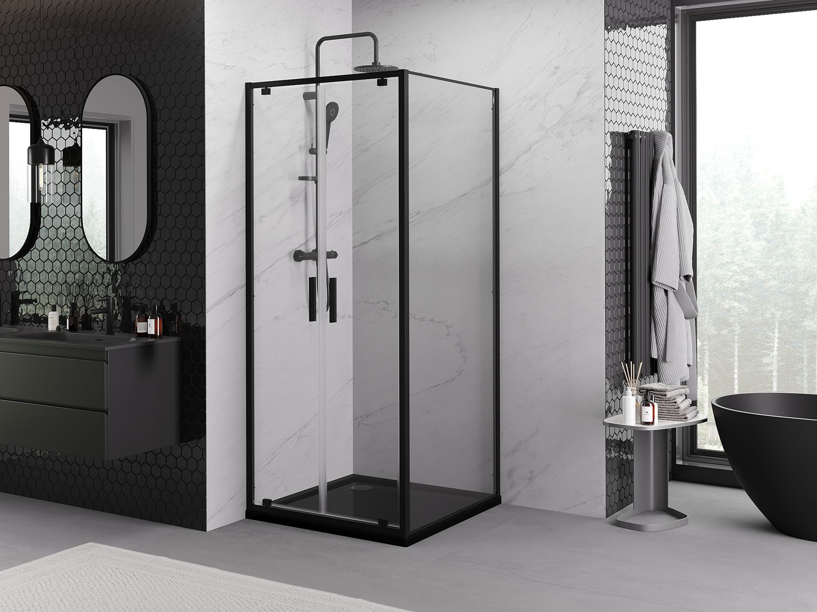 Mexen Exo cabina de duș cu ușă batantă 110 x 110 cm, transparentă, neagră - 8182-110-110-70-00
