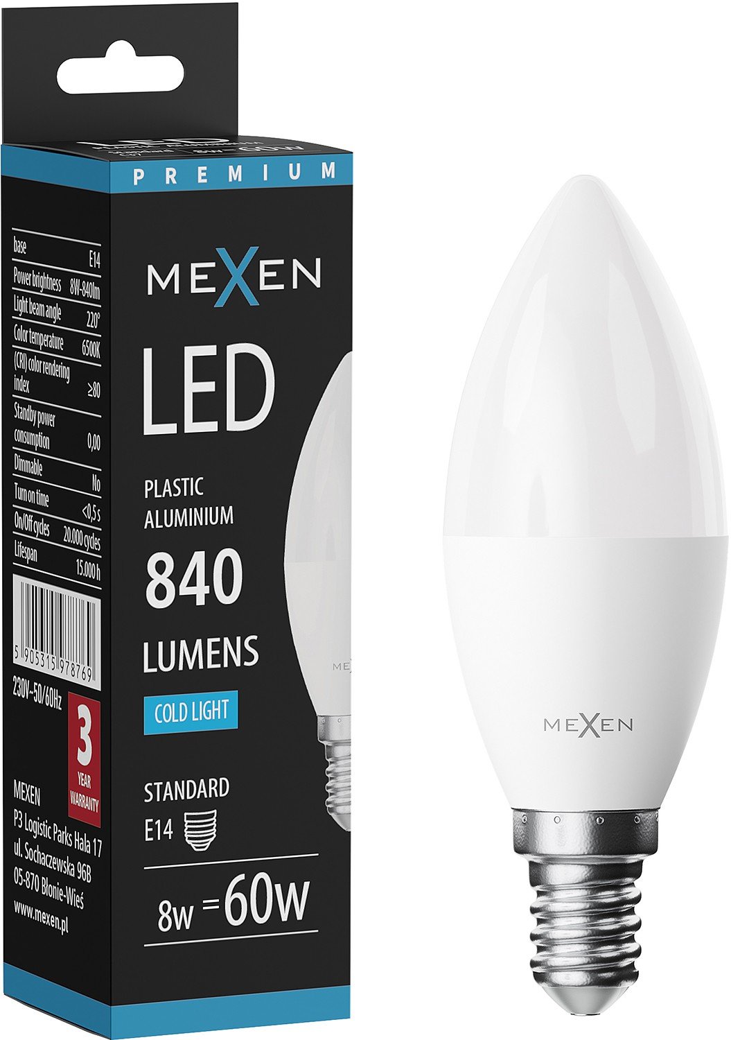 Mexen Nova Bec LED E14, C37, 8W, Rece - 6500K, 840 lm - L102-E14-0865-01