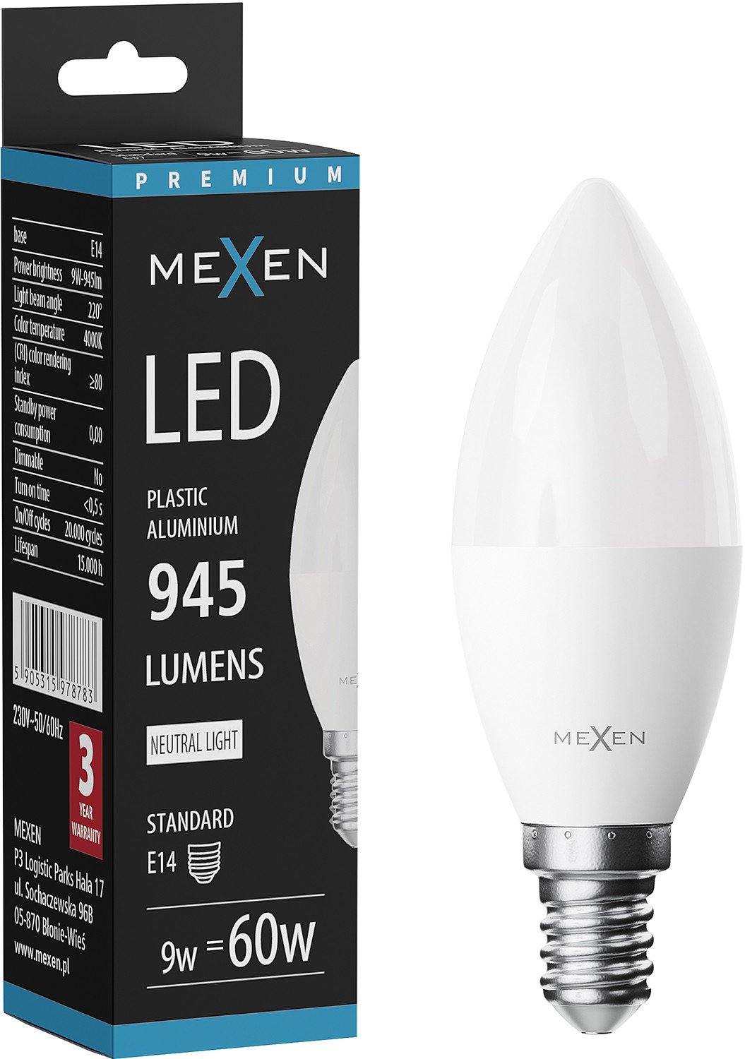 Mexen Nova Bec LED E14, C37, 9W, Neutru - 4000K, 945 lm - L102-E14-0940-01