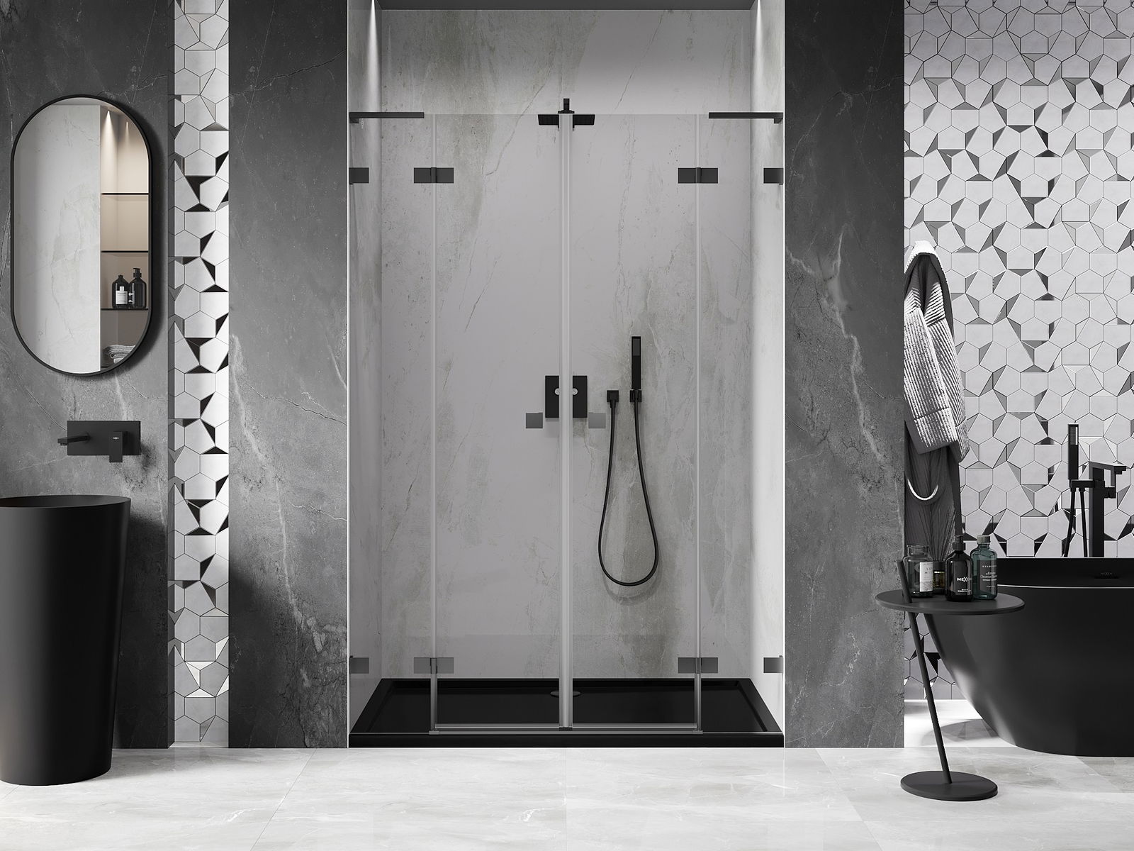Mexen Rio cabină de duș pătrată 90 x 90 cm, transparentă, neagră - 860-090-090-70-00