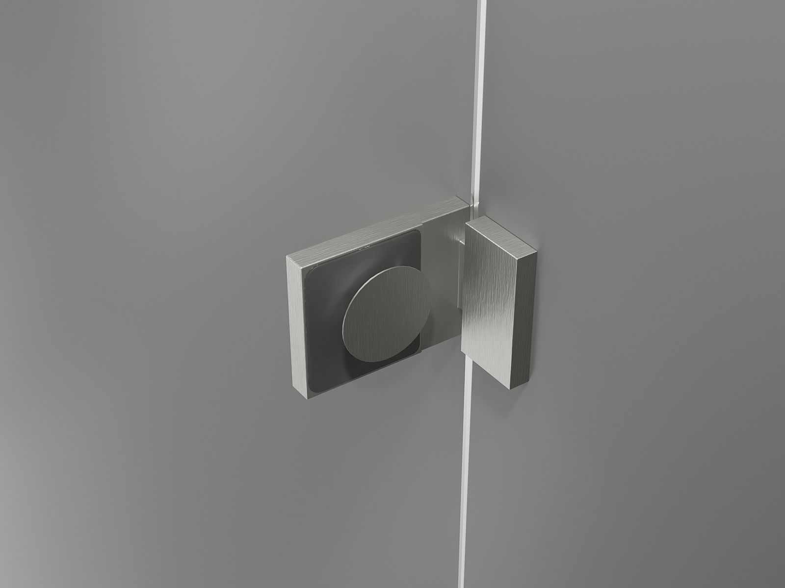 Clemă și balamale din alamă înglobate în panoul de sticlă