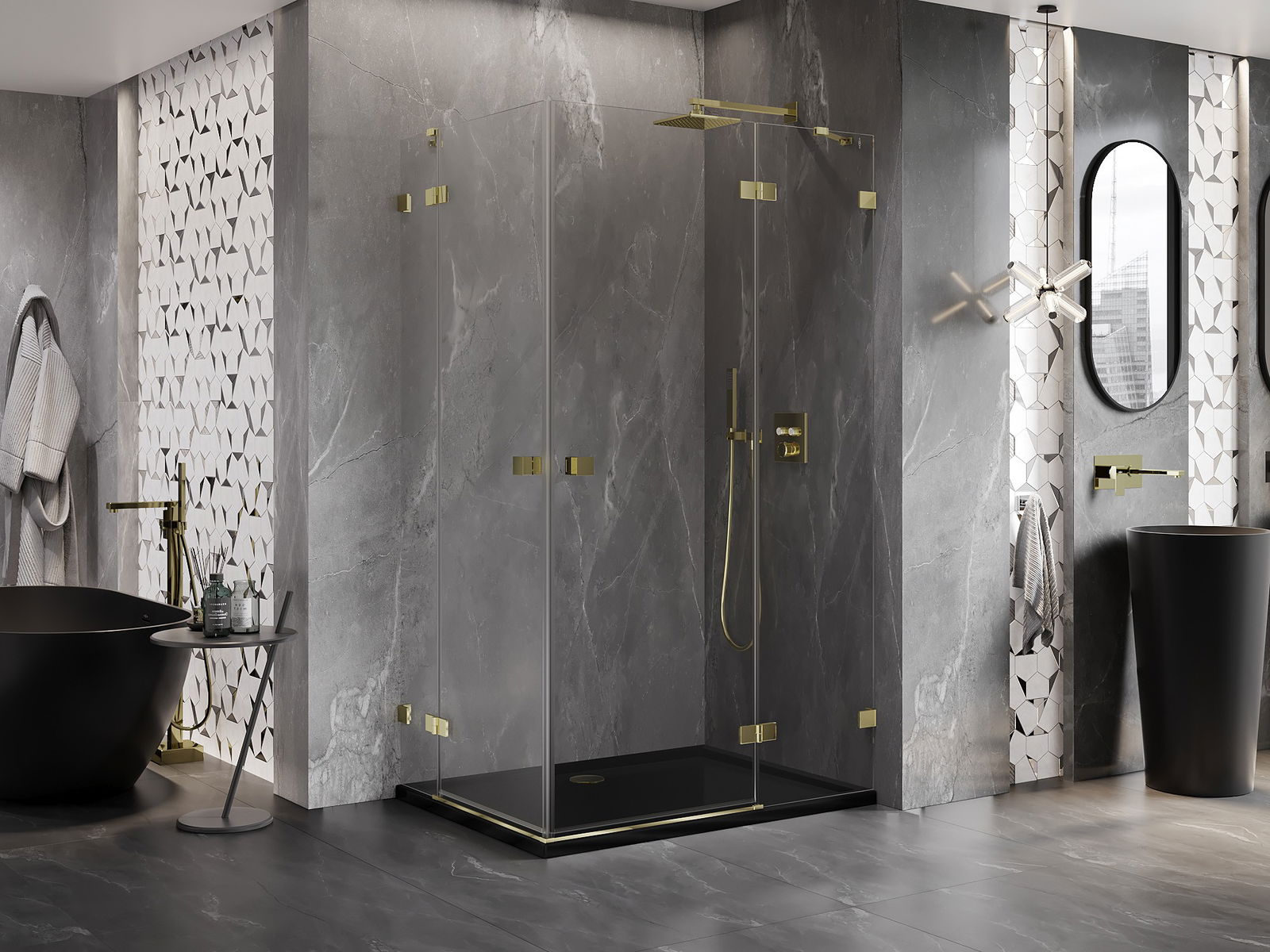 Mexen Lunar Duo cabină de duș cu ușă pivotantă dreaptă 90 x 85 cm, transparentă, aurie - 834-090P-085L-50-00