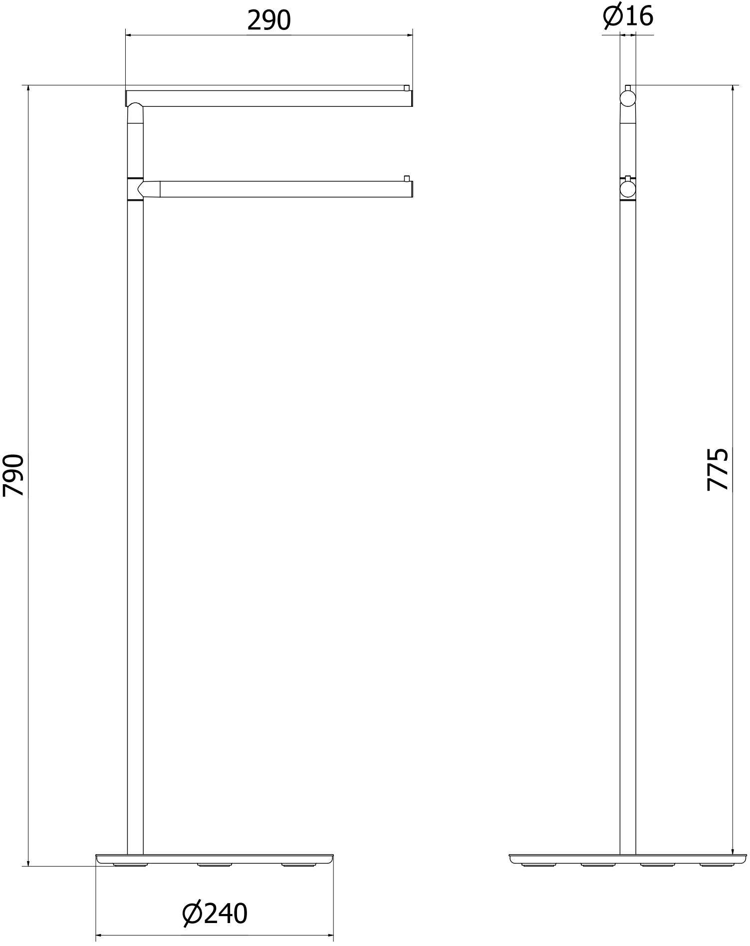 2 bare pentru prosoape la înălțimi diferite