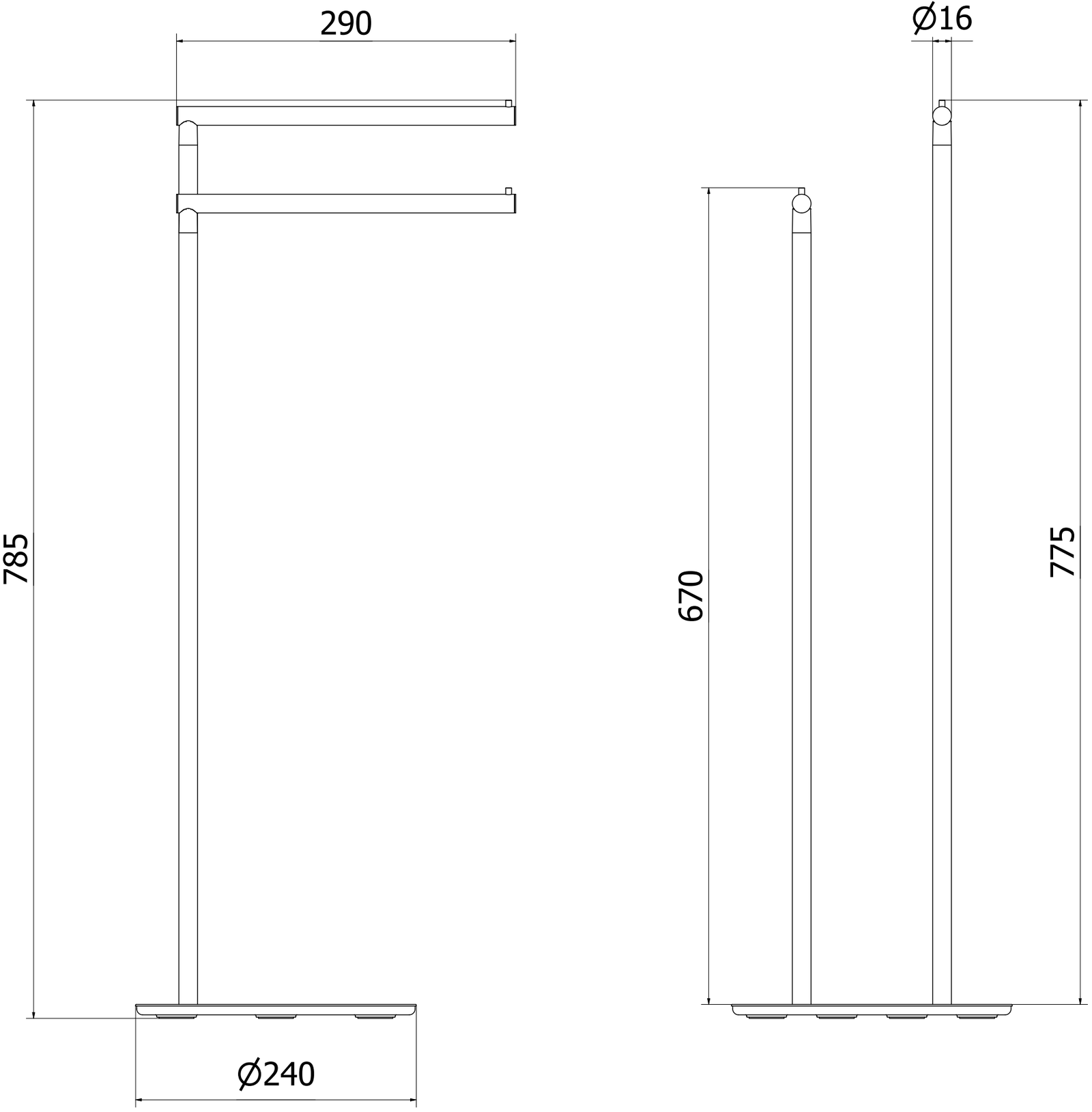 2 bare pentru prosoape la înălțimi diferite