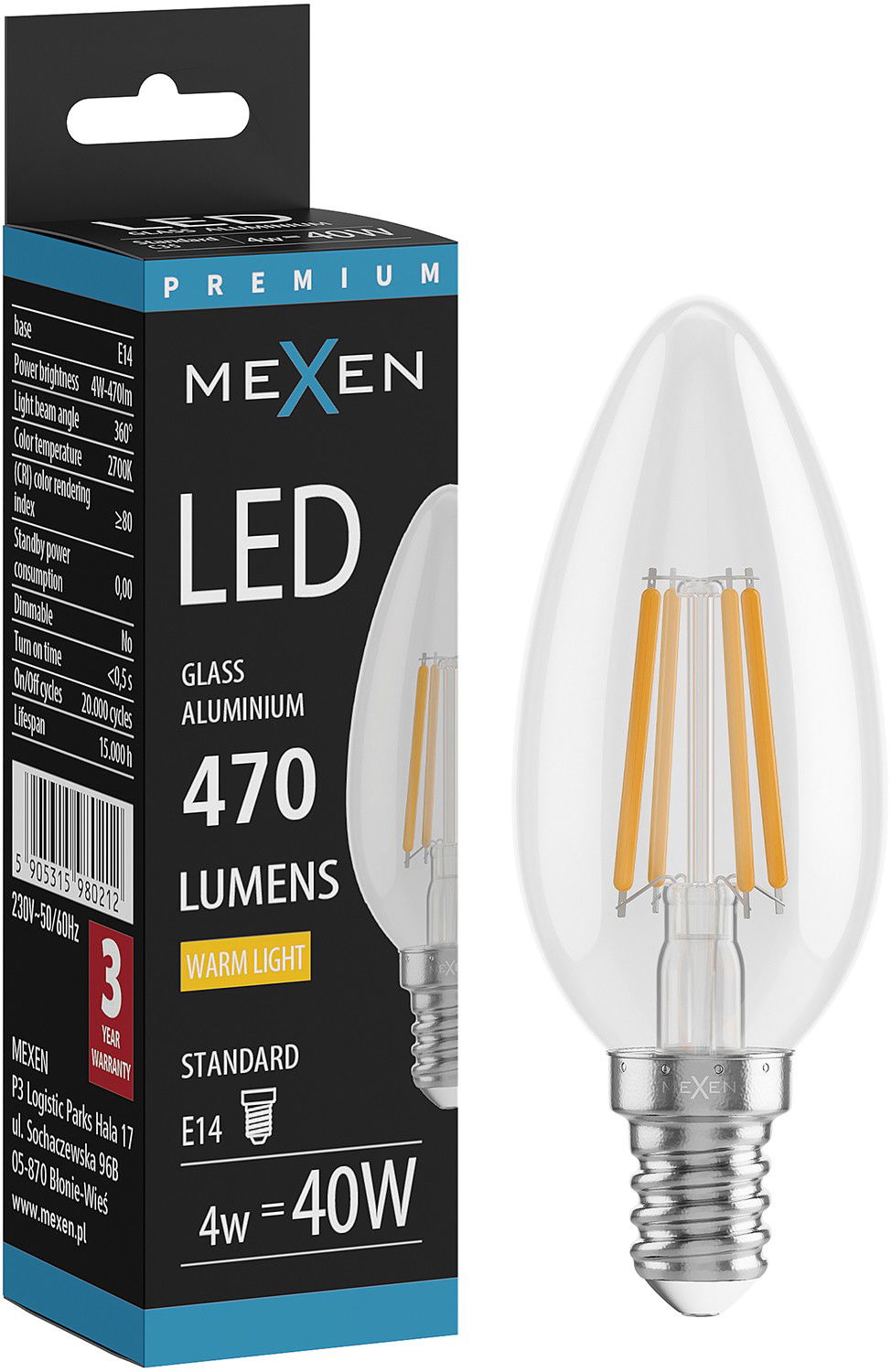 Mexen Vintis Bec LED filament E14, C35, 4W, Caldă - 2700K, 470 lm, clar - L154-E14-0427-00
