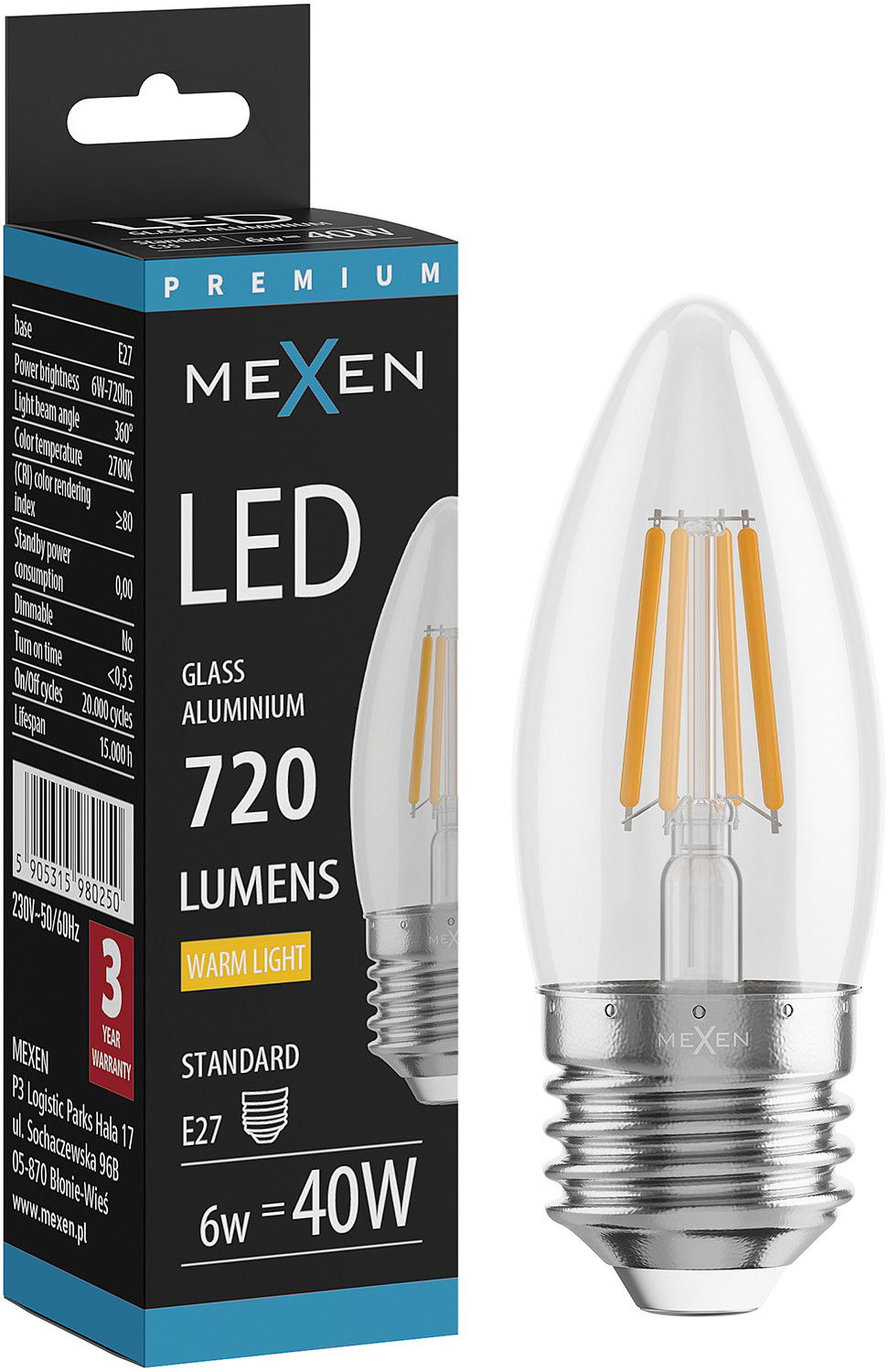 Mexen Vintis Bec LED cu filament E27, C35, 6W, Cald - 2700K, 720 lm, clar - L154-E27-0627-00