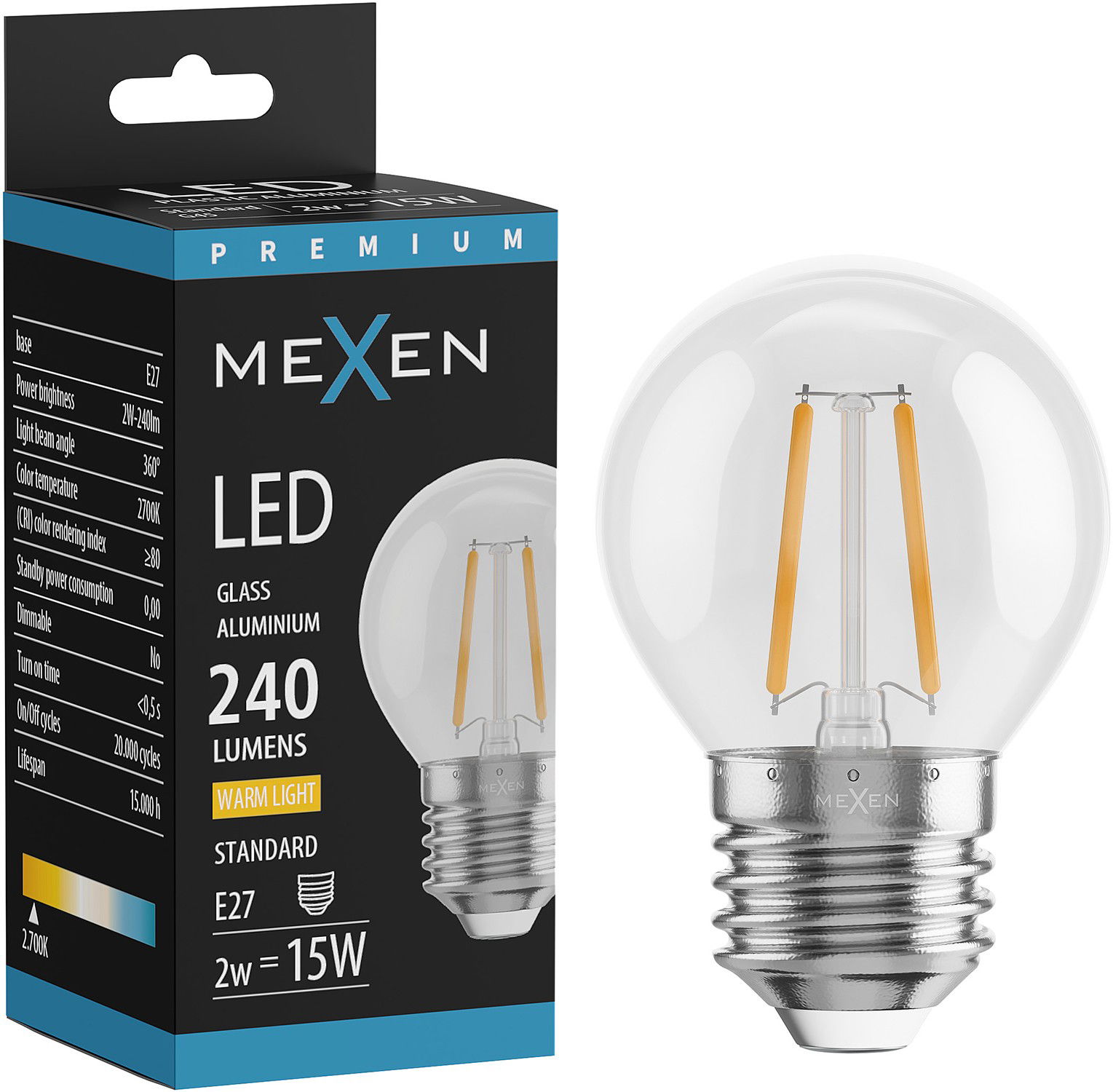 Mexen Vintis Bec LED filament E27, G45, 2W, Caldă - 2700K, 240 lm, clar - L156-E14-0227-00 - L156-E27-0227-00