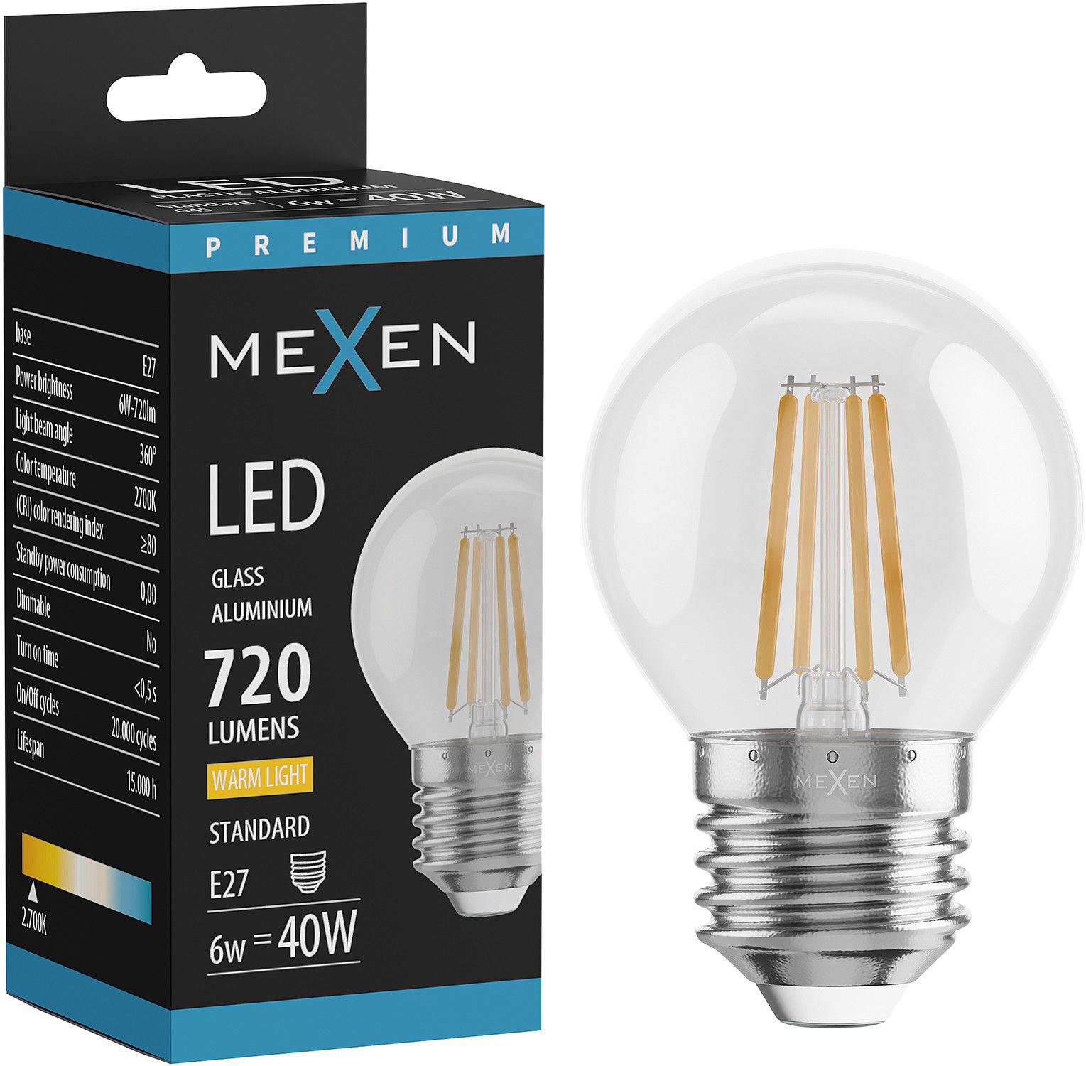 Mexen Vintis Bec LED filament E27, G45, 6W, Cald - 2700K, 720 lm, clar - L156-E27-0627-00